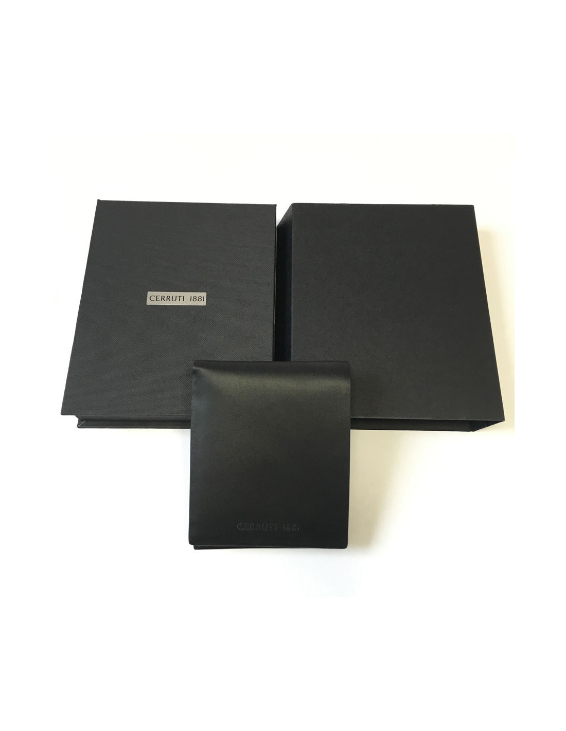CERRUTI 1881 black smooth leather wallet, black cloth interior. A wallet, closing pressure, 4 credit card slots, 3 medium-sized slots for ID etc... and 2 large slots to tickets.