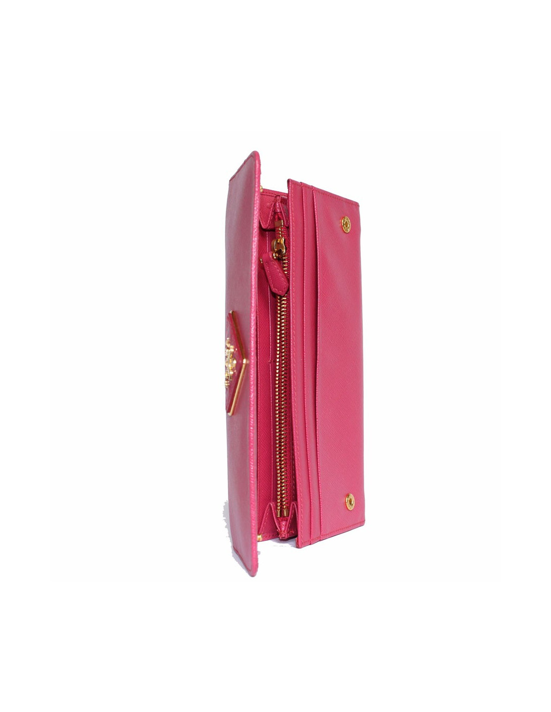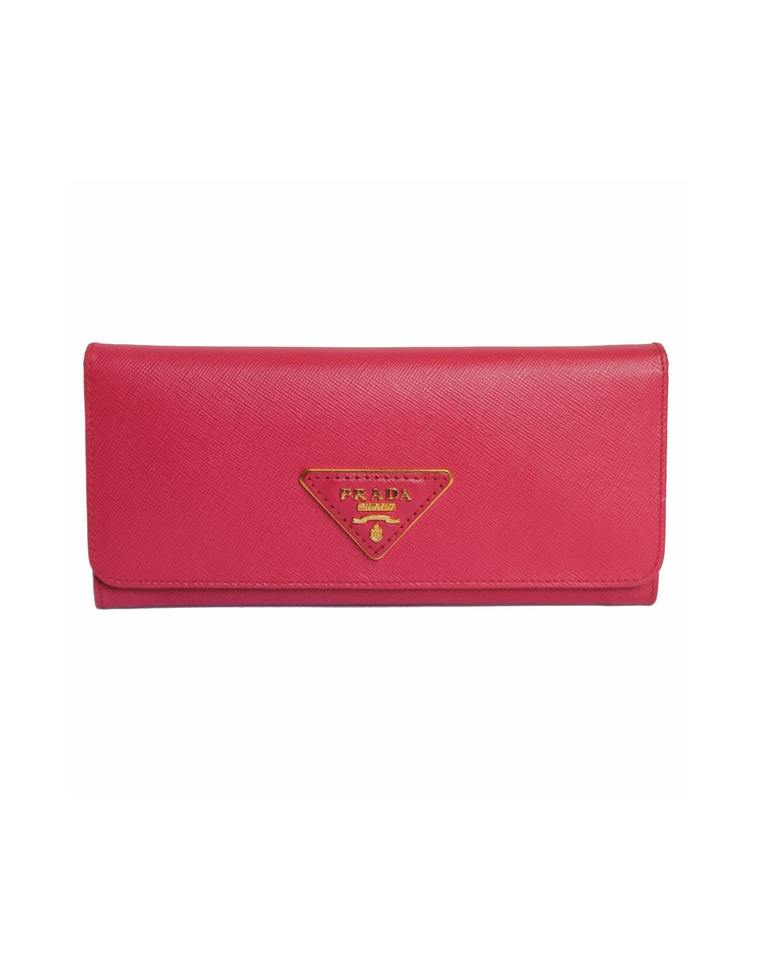 The Prada House grained leather wallet pink fuschia. Snap button closure. Golden jewelry. 12 cards blue, 4 large ticket slots slots, a zipped to the currency as well as a Pocket Pocket zipped at the back. Authenticity card. In very good condition.