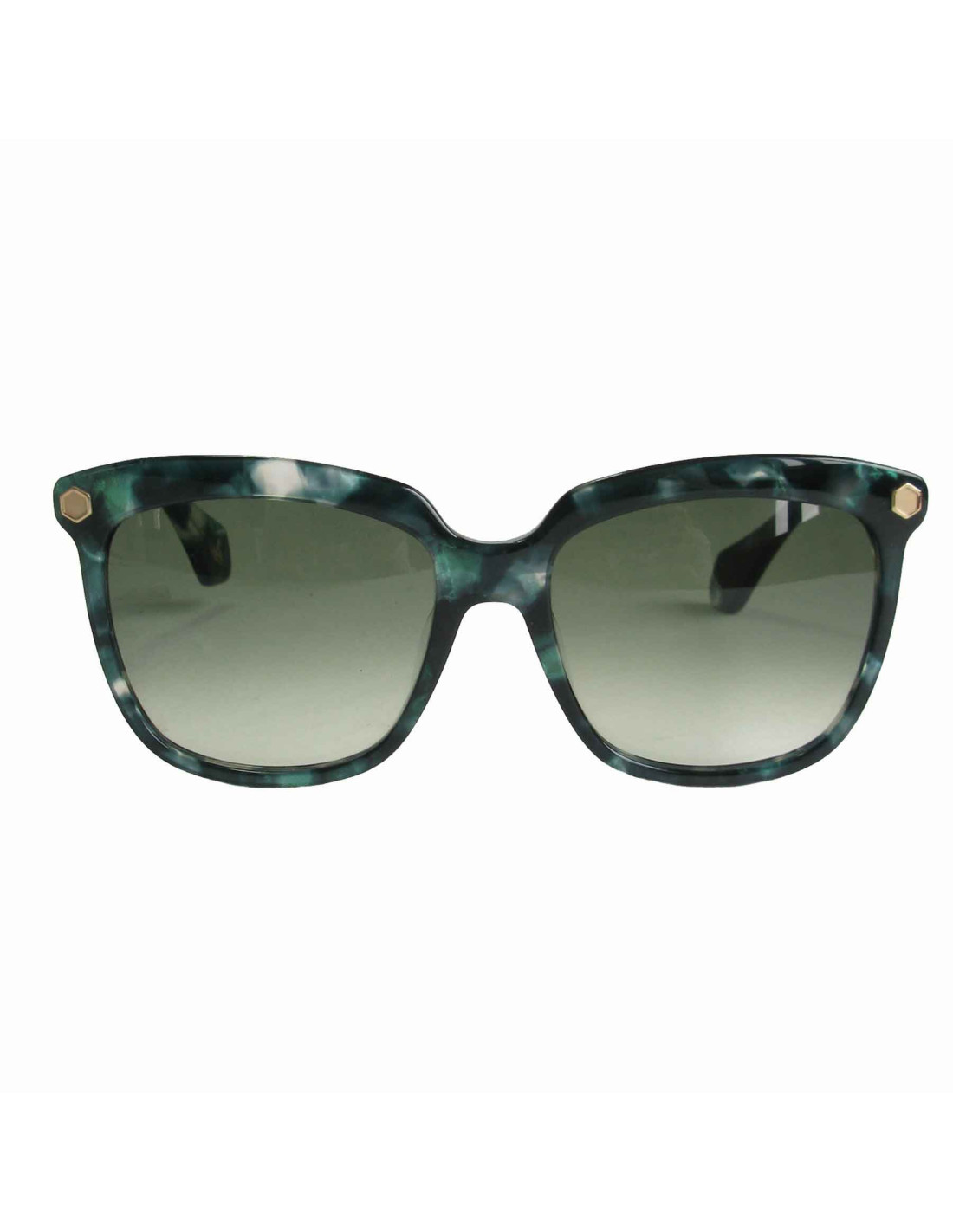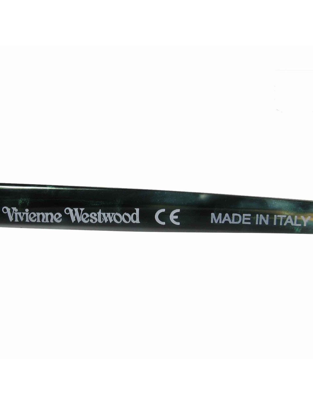 Lunettes de soleil Vivienne Westwood en plexiglass vert avec un effet nacré. Couleur des verres : dégradé de vert.