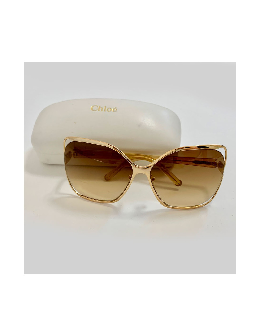 Lunettes de soleil CHLOE oversize carrées en métal doré