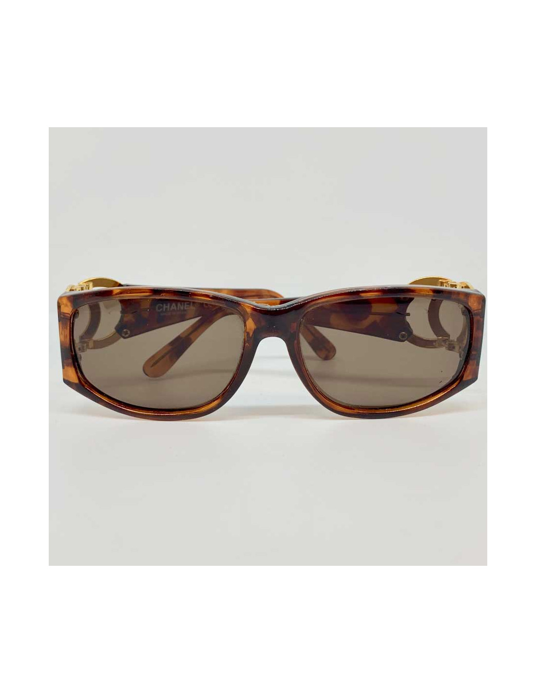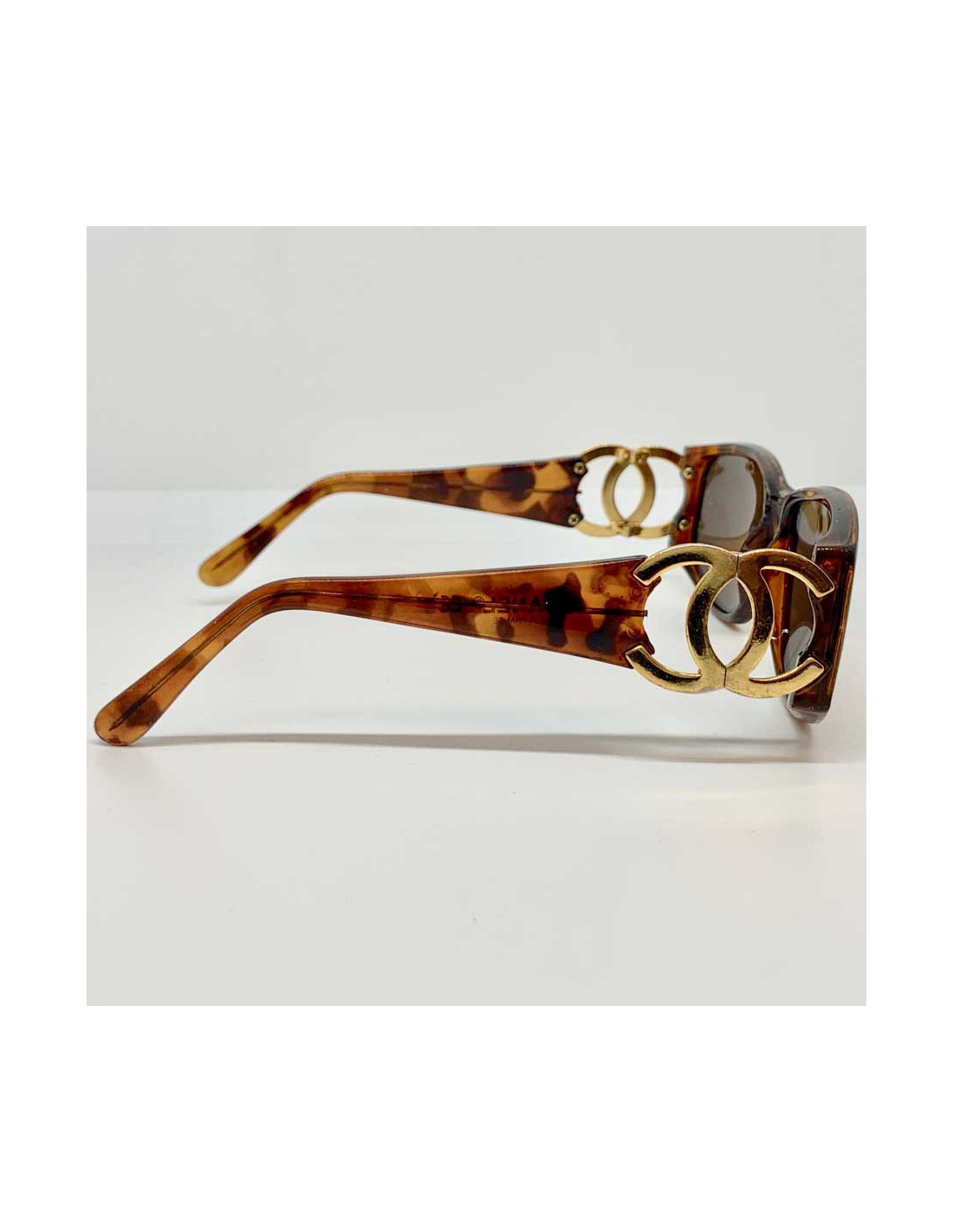 Last items in stock SUNGLASSES CHANEL sunglasses with rhinestones paved temples CHANEL 23212 310.00 € CHANEL sunglasses with rhinestones paved temples Condition: very goodMade in ItalyMaterial: acetate, rhinestonesColors: beigeMeasurements: frame's width: 14cm, lense's height: 5cm, temple's length: 14cmDetails: Chanel sunglasses in beige plastic. The temples are embellished with round, square and baguette-shaped rhinestones. Advantage Valois Vintage... Add to cart