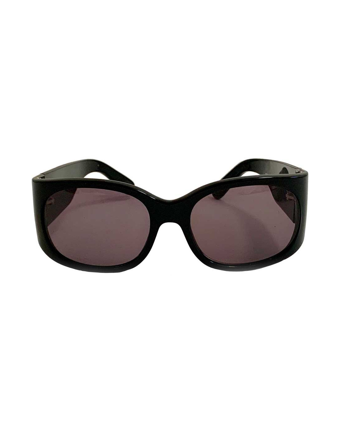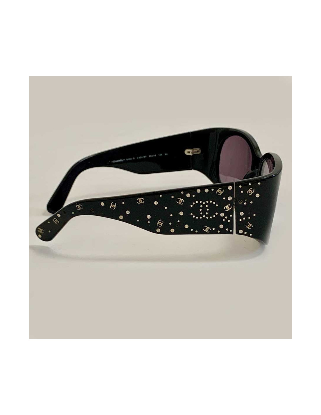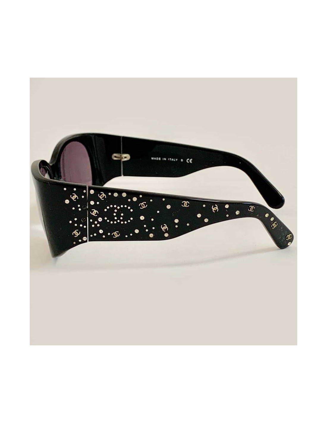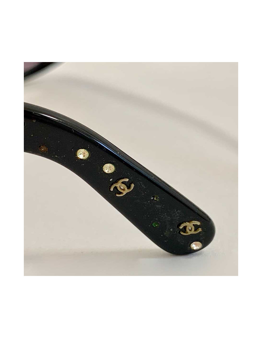 Pair of CHANEL sunglasses. Black acetate frames embellished with white CC diamonds and silver-plated metal CCs.