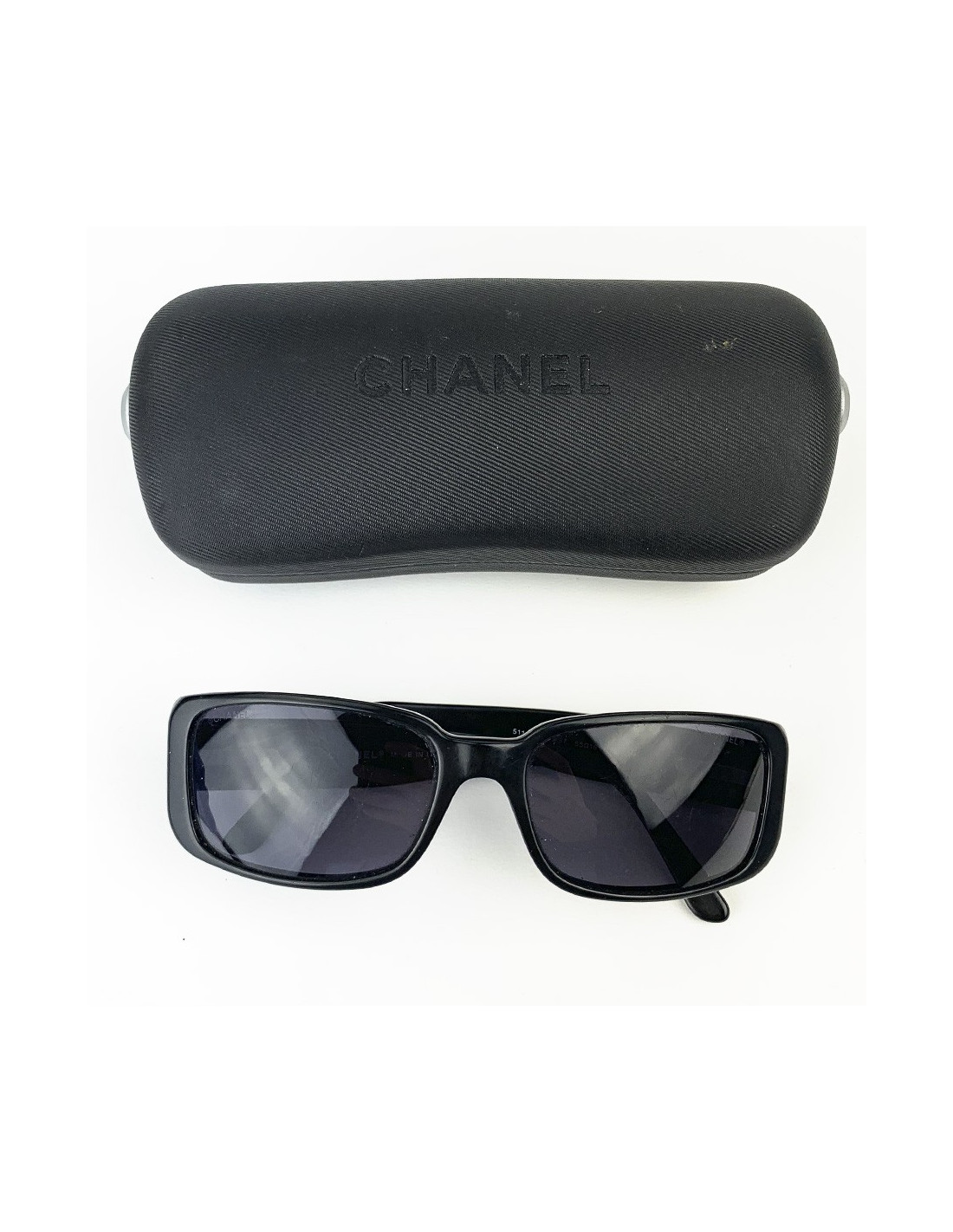 Sold SUNGLASSES CHANEL sunglasses grey and black plastic CHANEL 19149 200.00 € CHANEL sunglasses. Gray and black plastic frame. Inclusion of elements Golden representative symbols of the mark in the branches: CC, 5,... Lens color: black gradient. Pair in correct state. The right glass is scratched on a part (see photo). 1 stripe on the left glass (see picture). Dimensions: width between the branches: 9 cm - length of branches: 13 cm... View