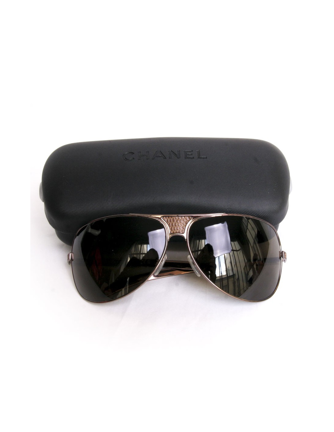 Sublime pair of Chanel sunglasses, the center of the frame and the branches are in python, the glasses are tinted black.