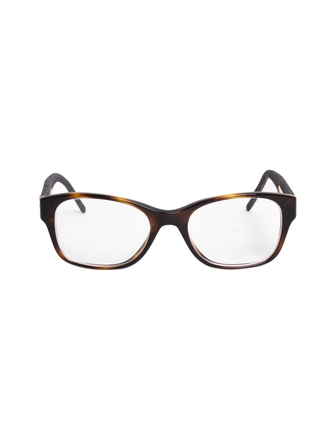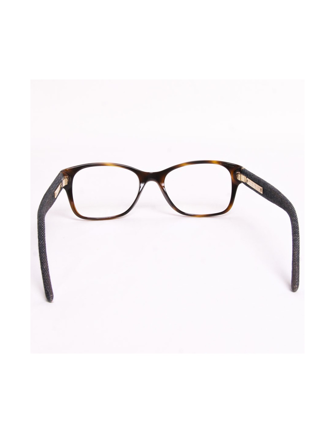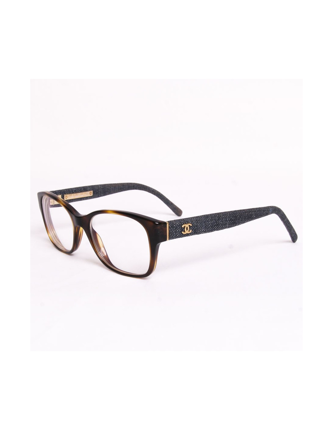 Chanel eyeglasses to mount Brown. The branches are covered with fabric in jean's. The Chanel logo is present on the two branches. The glasses can be changed to your view or be replaced with tinted Sun glasses.