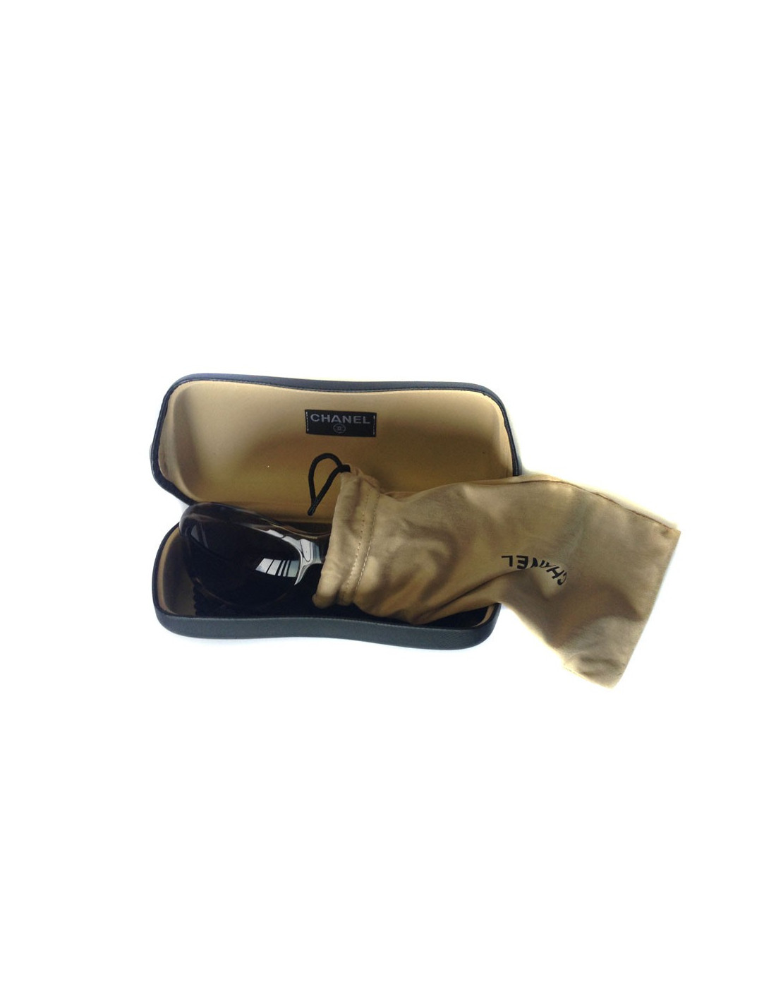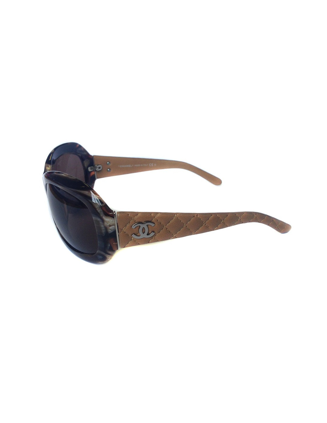 Sublime sunglasses Chanel, oval XL model in acetate, the branches are camel quilted lambskin, the abbreviation CC silver metal is present on the two branches.