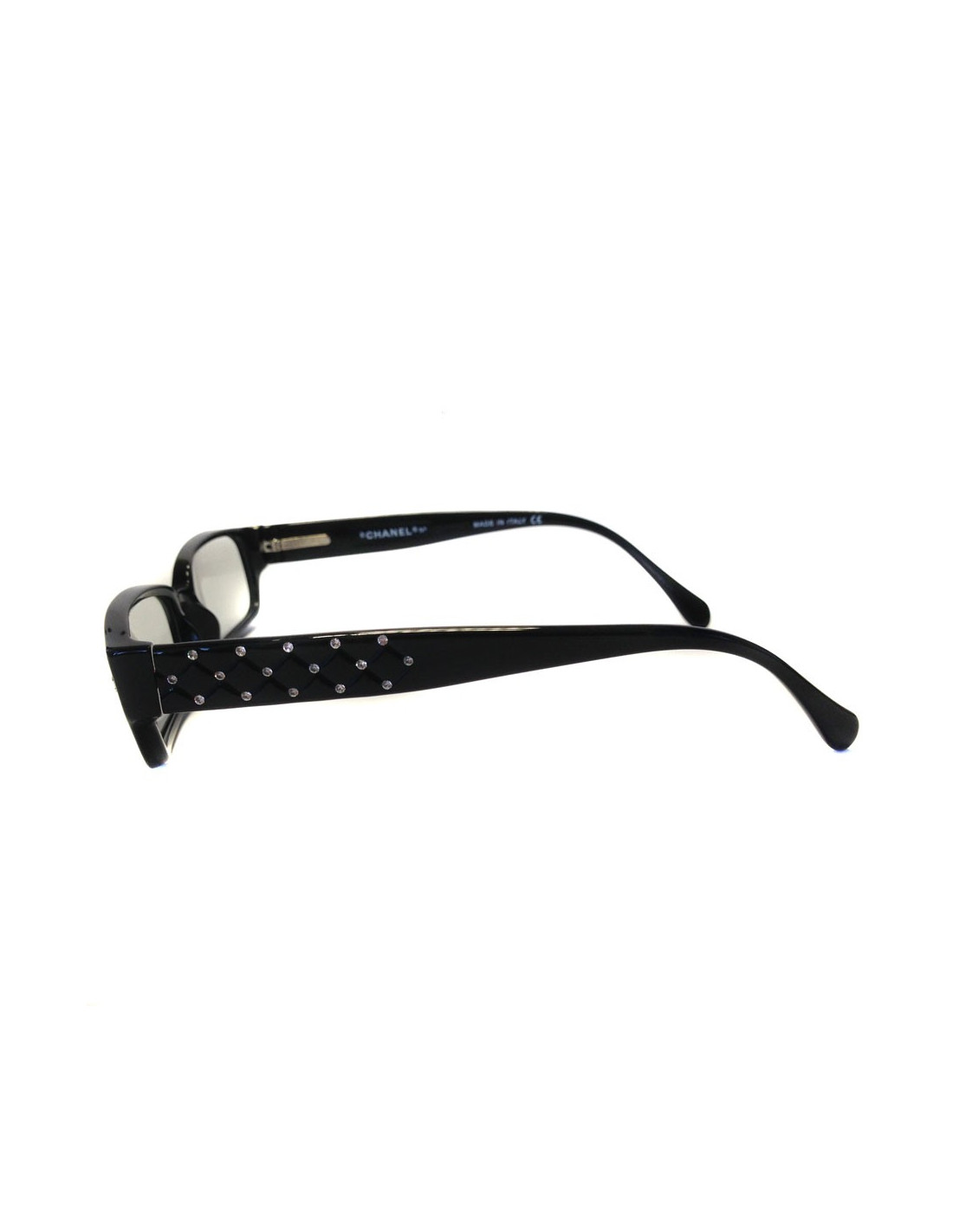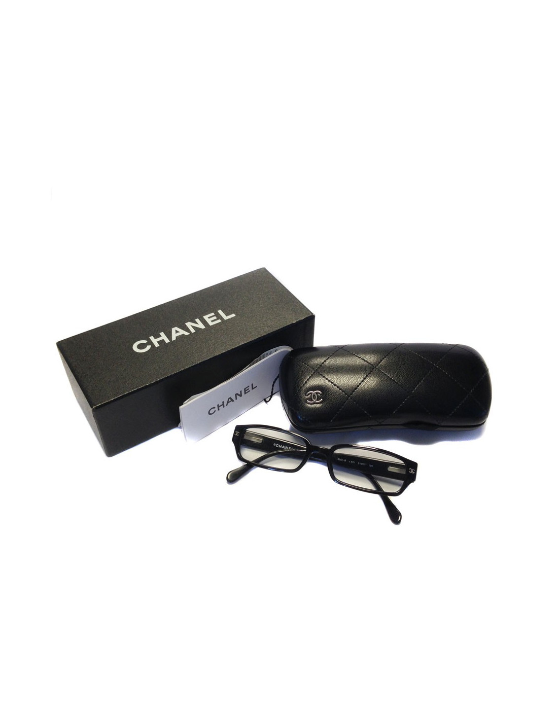 Chanel, rectangular glasses with black edges. transparent glasses, with branches padded rhinestones and double C silver.