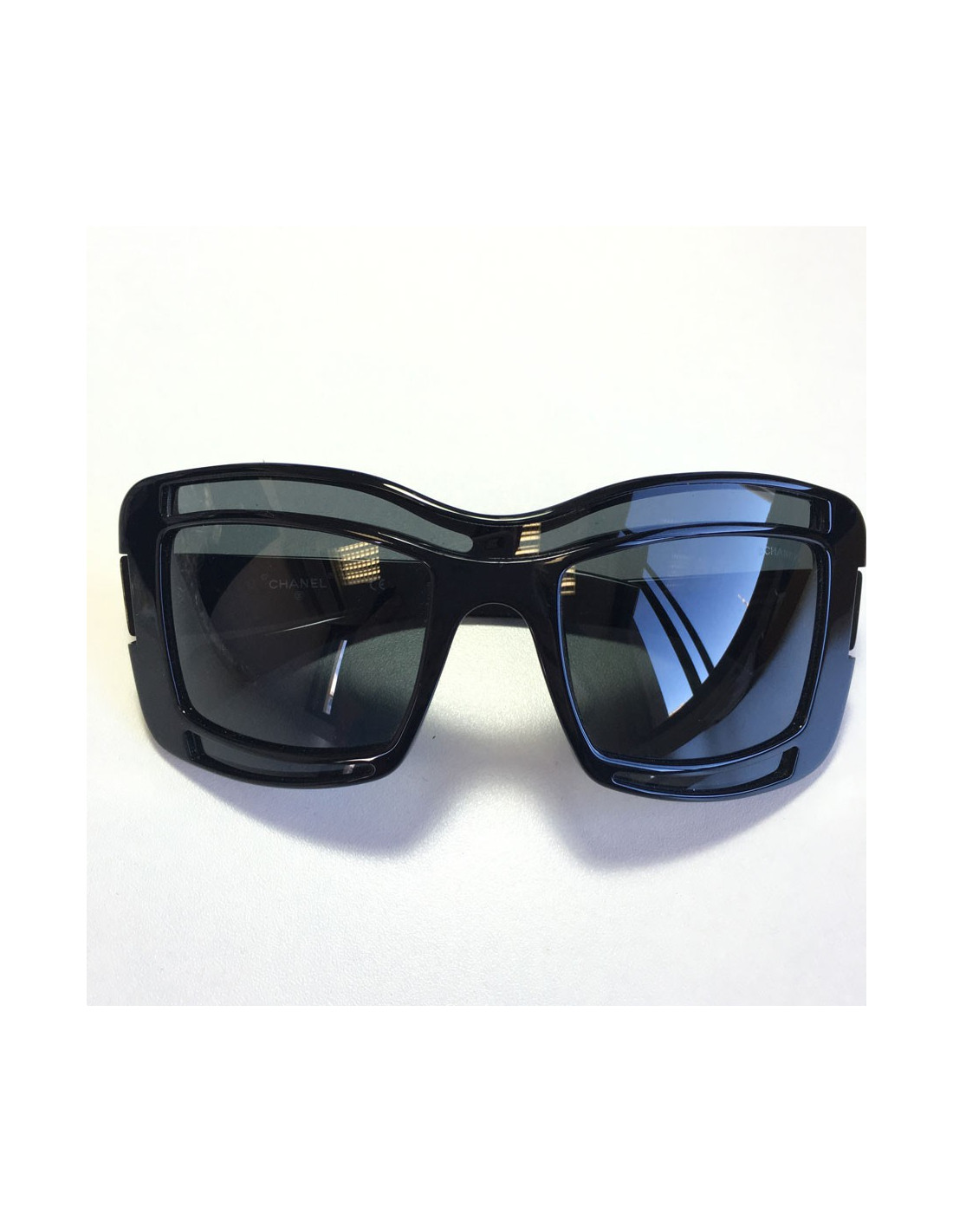Very beautiful CHANEL, retro style black plastic sunglasses. Tinted black lenses.
