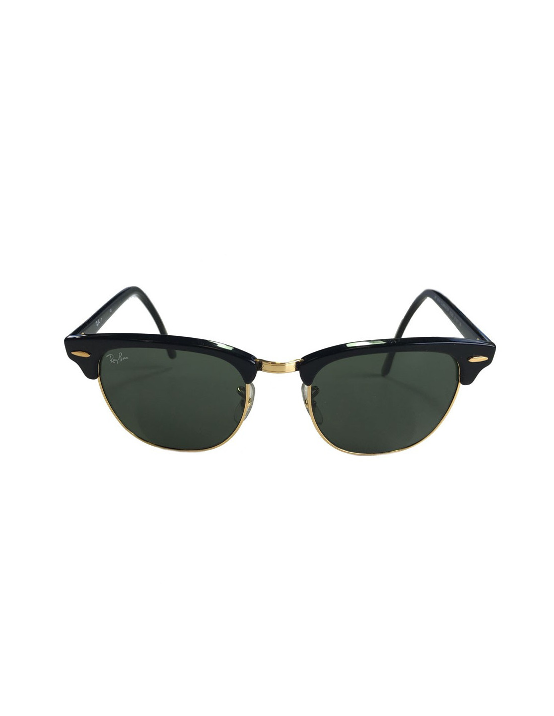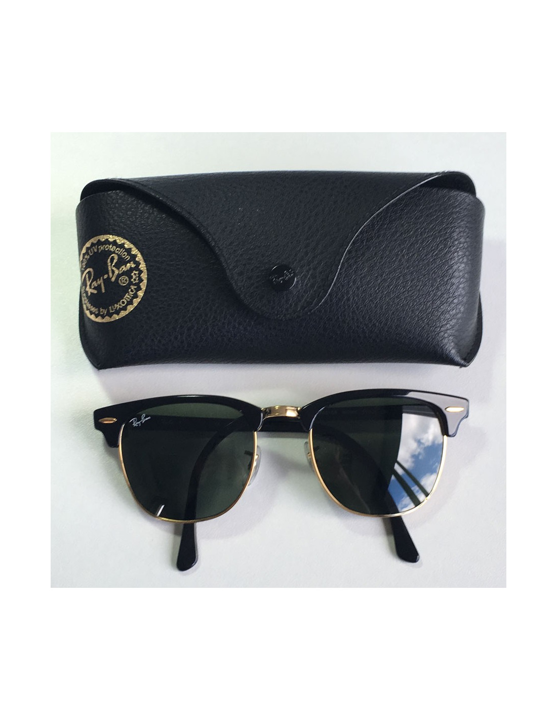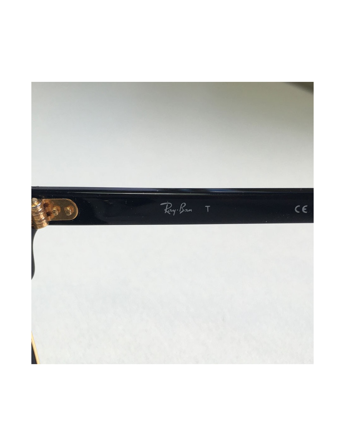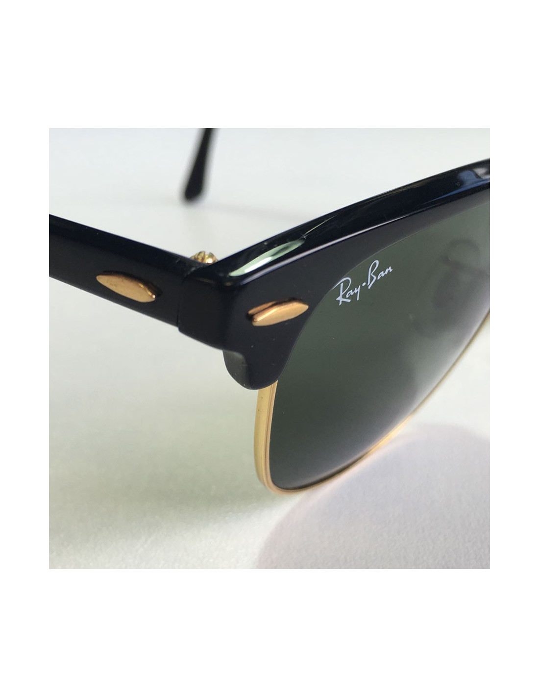 Rétro et moderne à la fois!! lunettes de soleil RAYBAN "Clubmaster". Monture en métal doré et plastique noir. Verres couleur "classic" de RAYBAN. Une infime rayure sur le verre droit et des microrayures sur les branches.