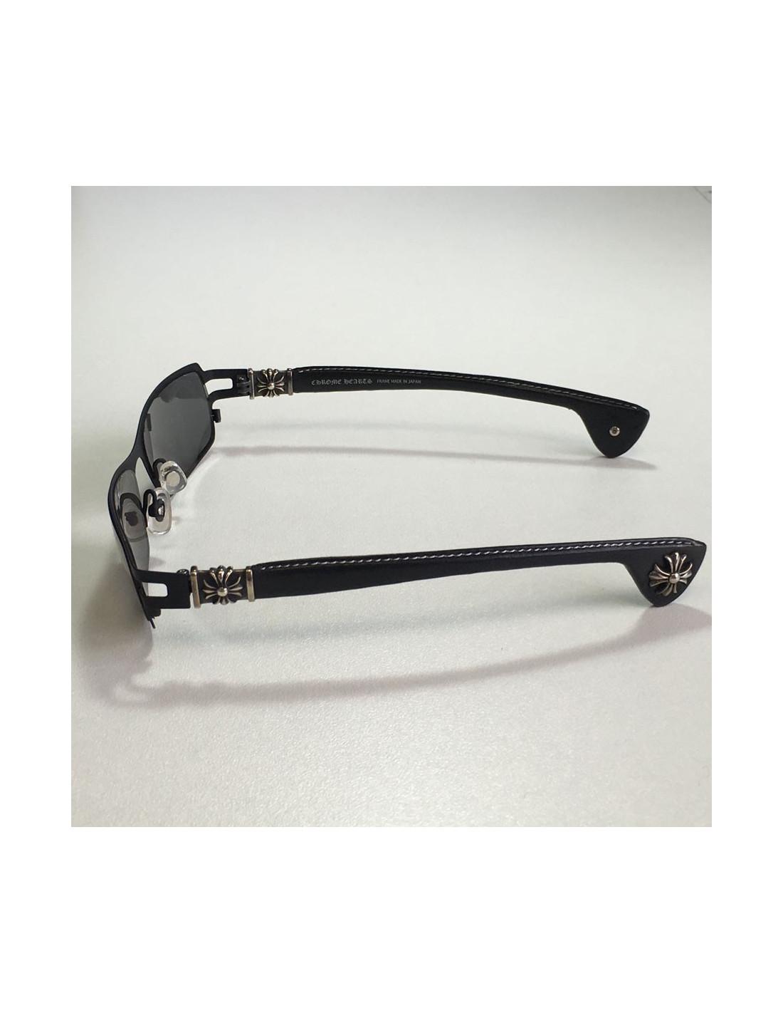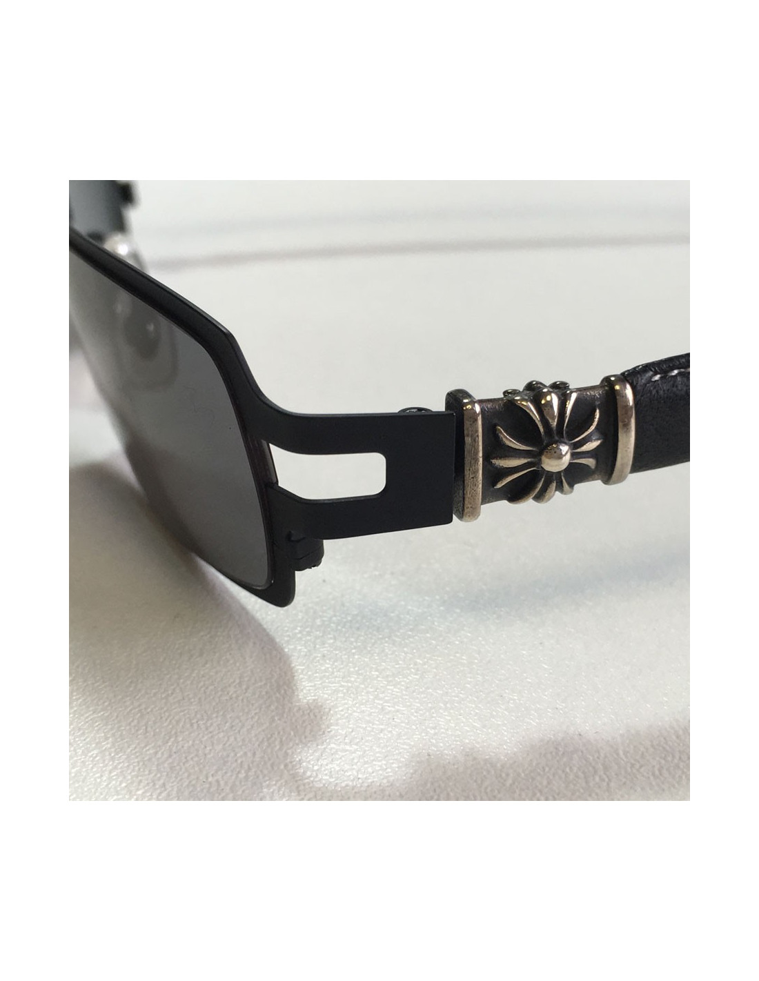 Original! sunglasses CHROME HEARTS matte black metal, jewelry in sterling silver, aged and leather industries. glasses color: black.