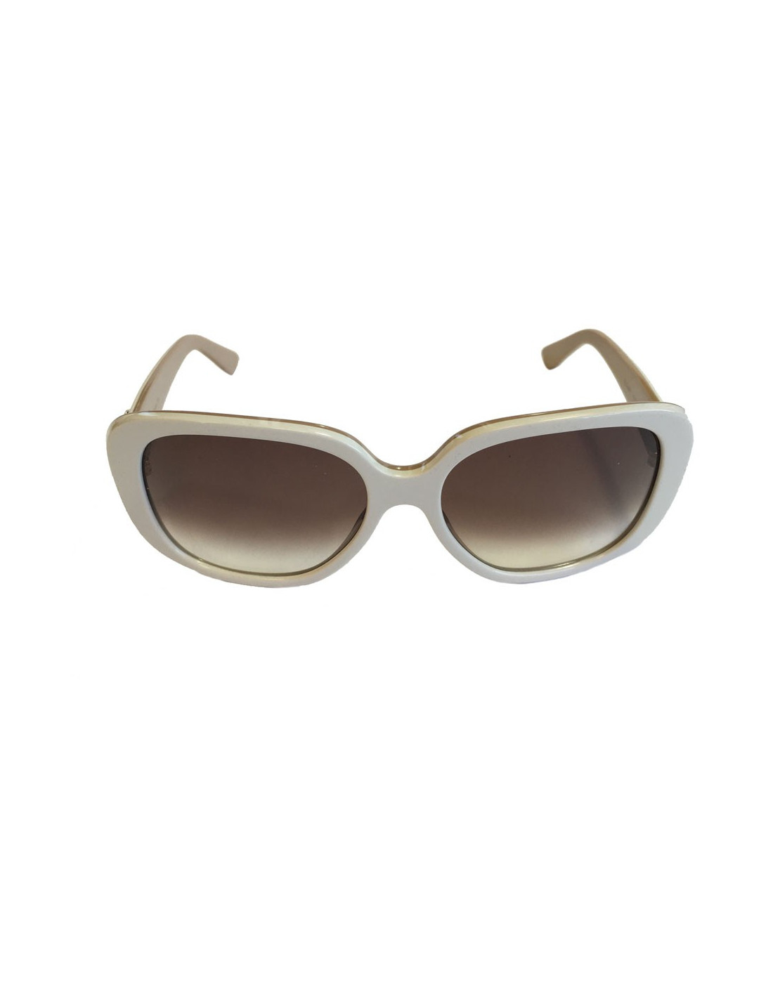 Lunettes de soleil CARTIER en plexi blanc d'un côté et crème de l'autre. verres en dégradé demarron. En parfait état.