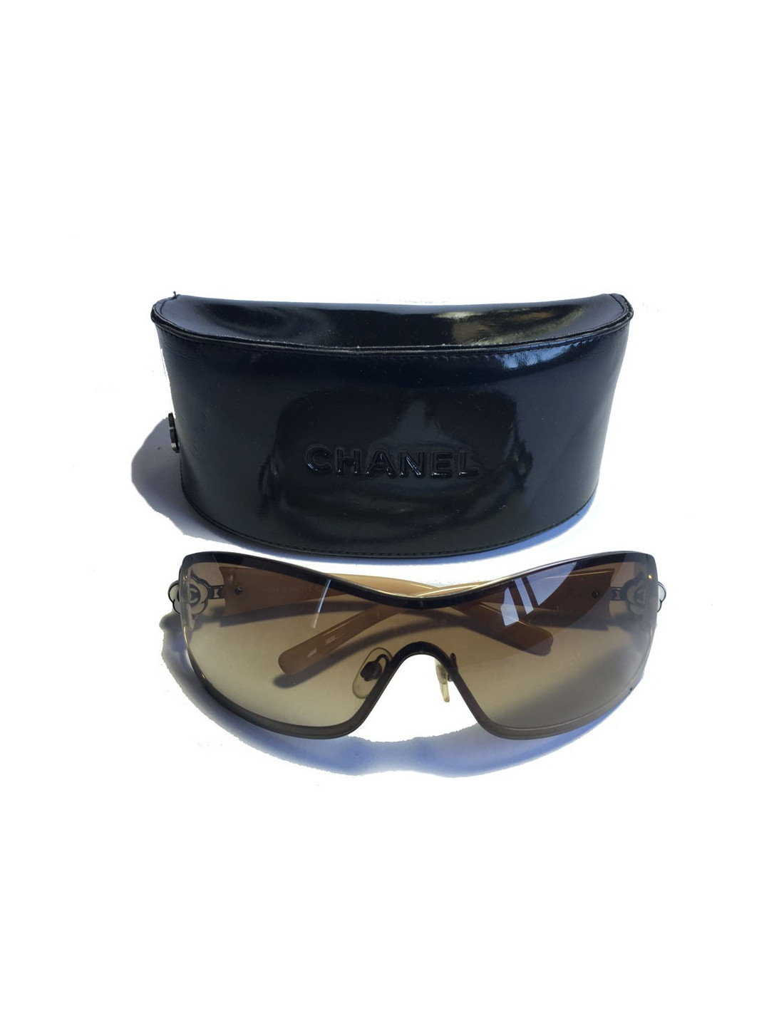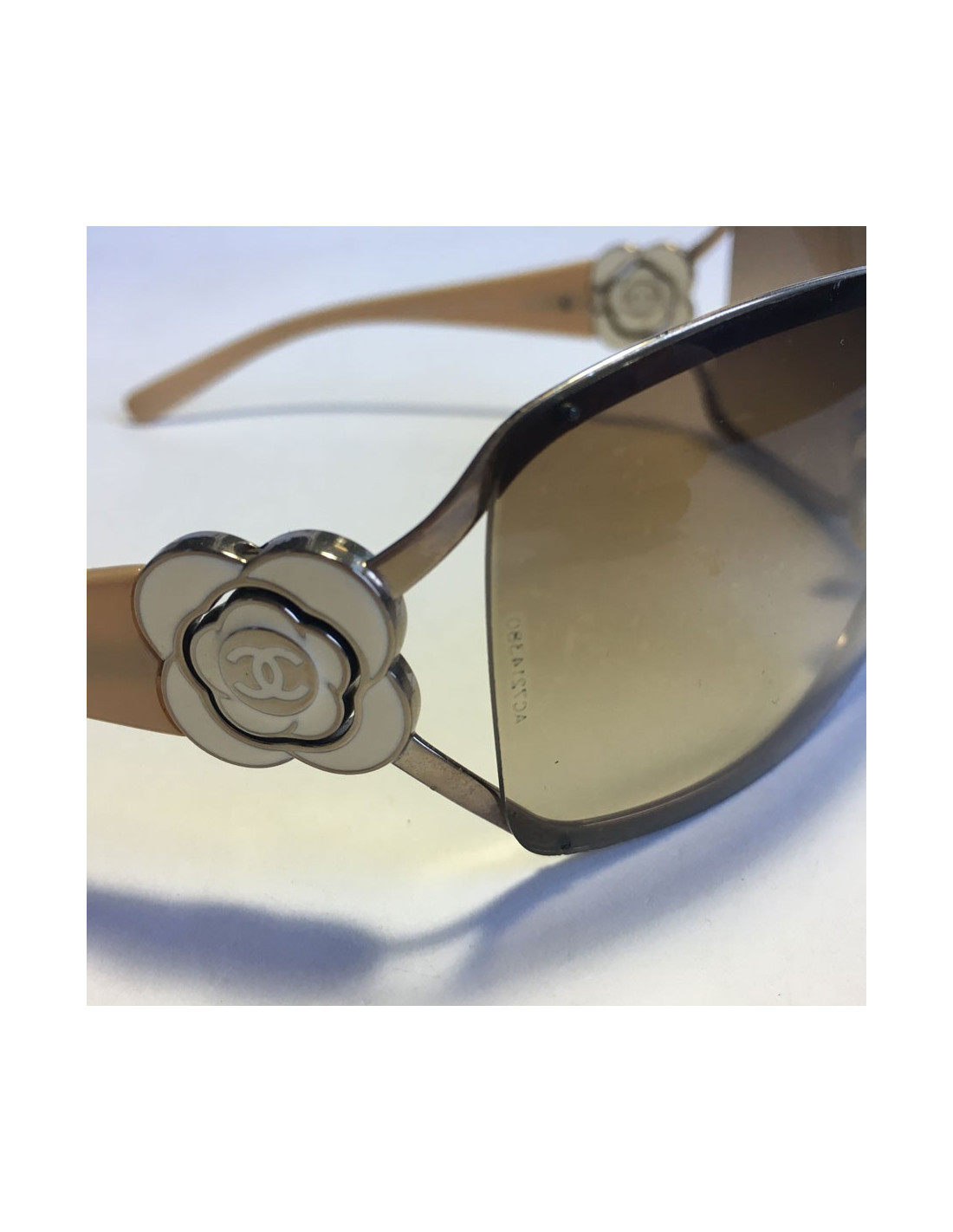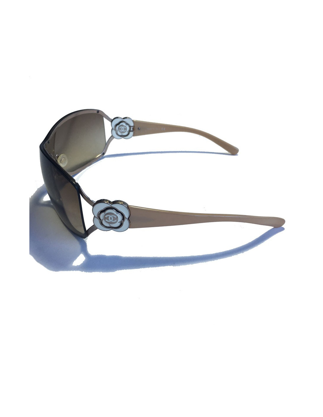 CHANEL sunglasses mask beige plastic branches decorated with a Camellia ivory metal and metal.
