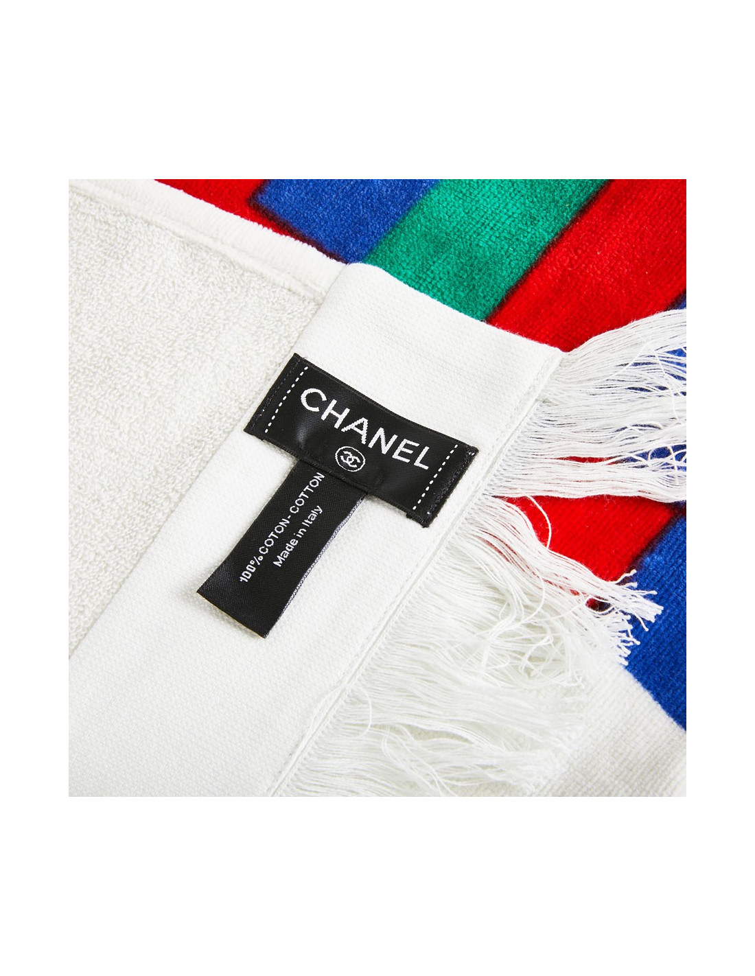 Last items in stock THE BEACH CHANEL White and Neon Pink Bath Towel in Cotton CHANEL 25784 440.00 € CHANEL White and Neon Pink Bath Towel in Cotton Condition: New conditionMade in ItalyMaterial: cottonColors: White / fluo pink / silverDimensions: 172 x 124 cm Add to cart