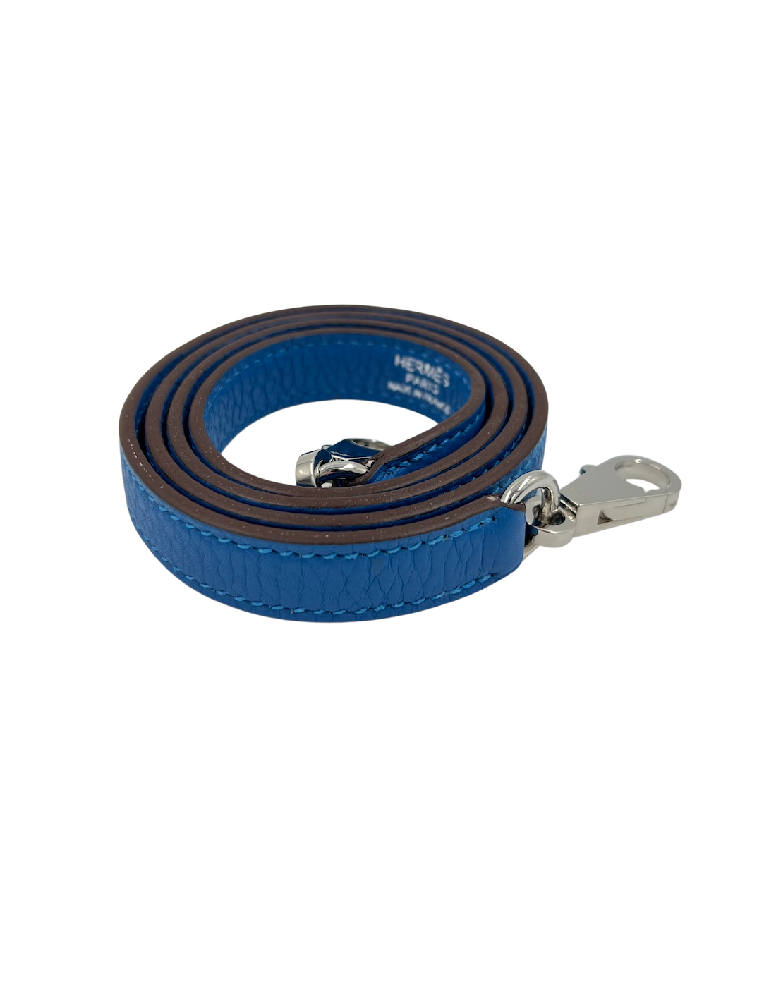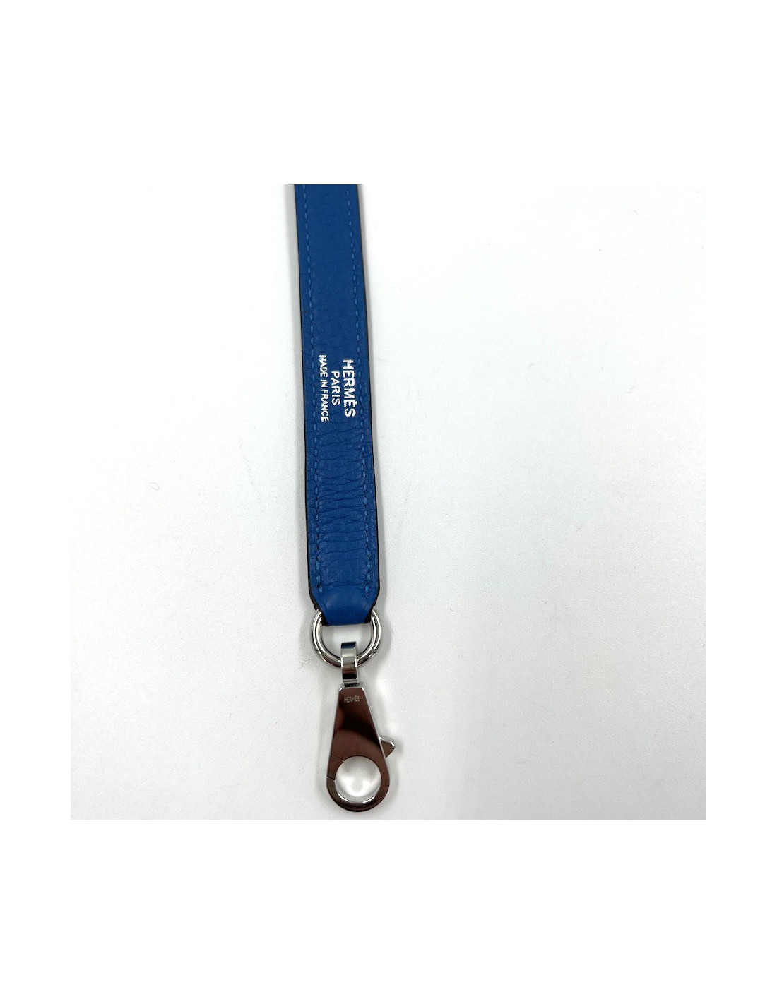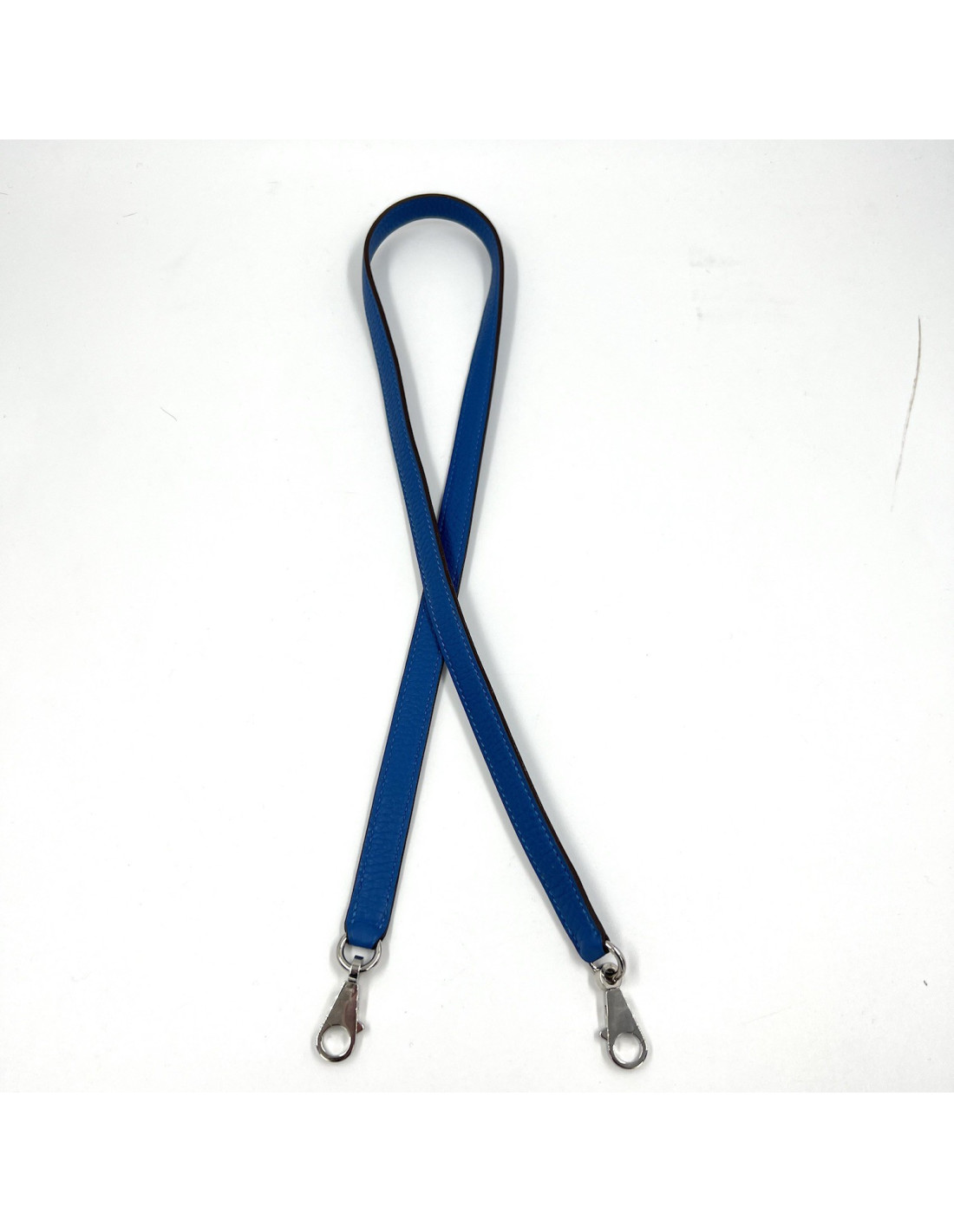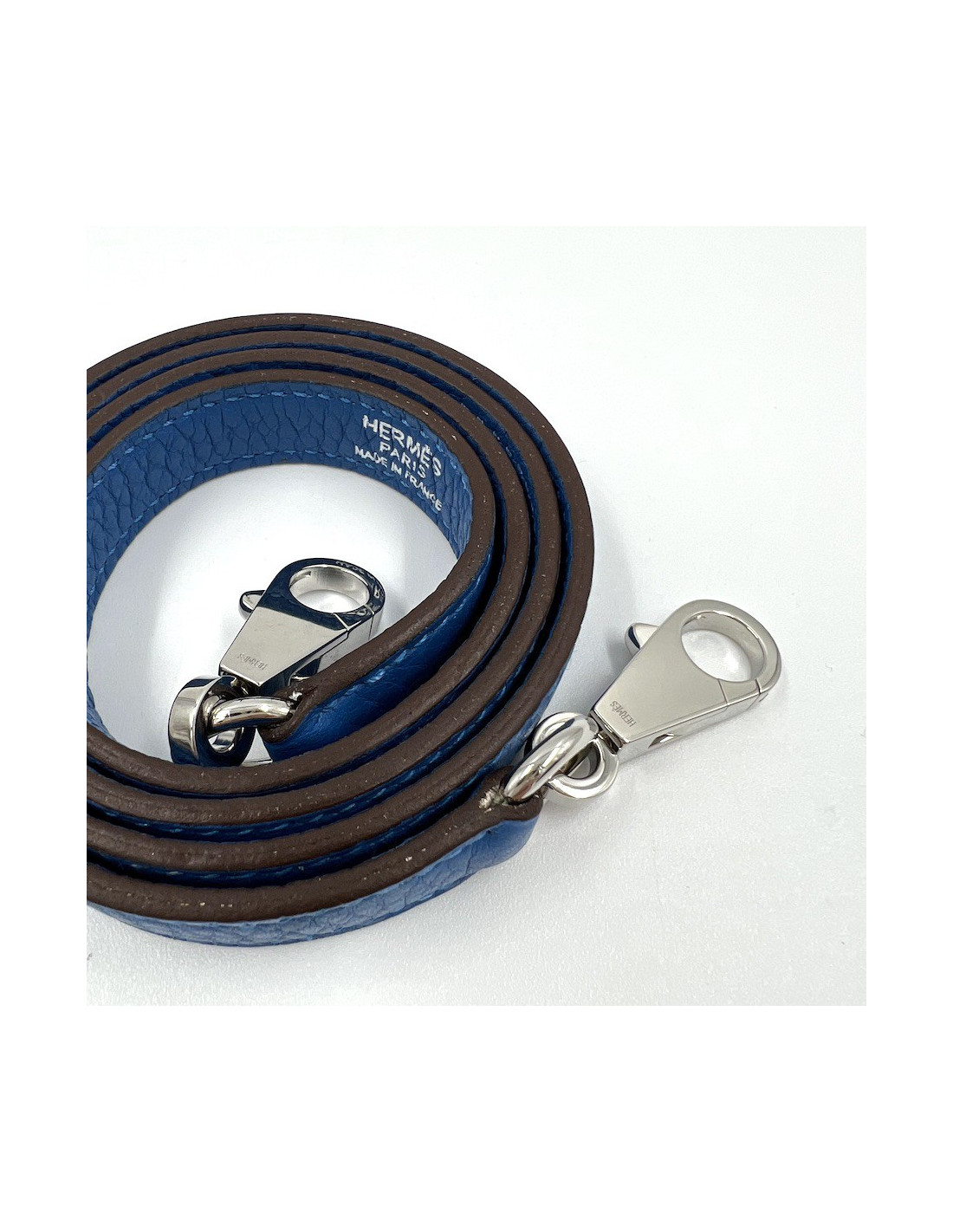 HERMES shoulder strap blue Clémence baby bull leather and palladium silver hardware