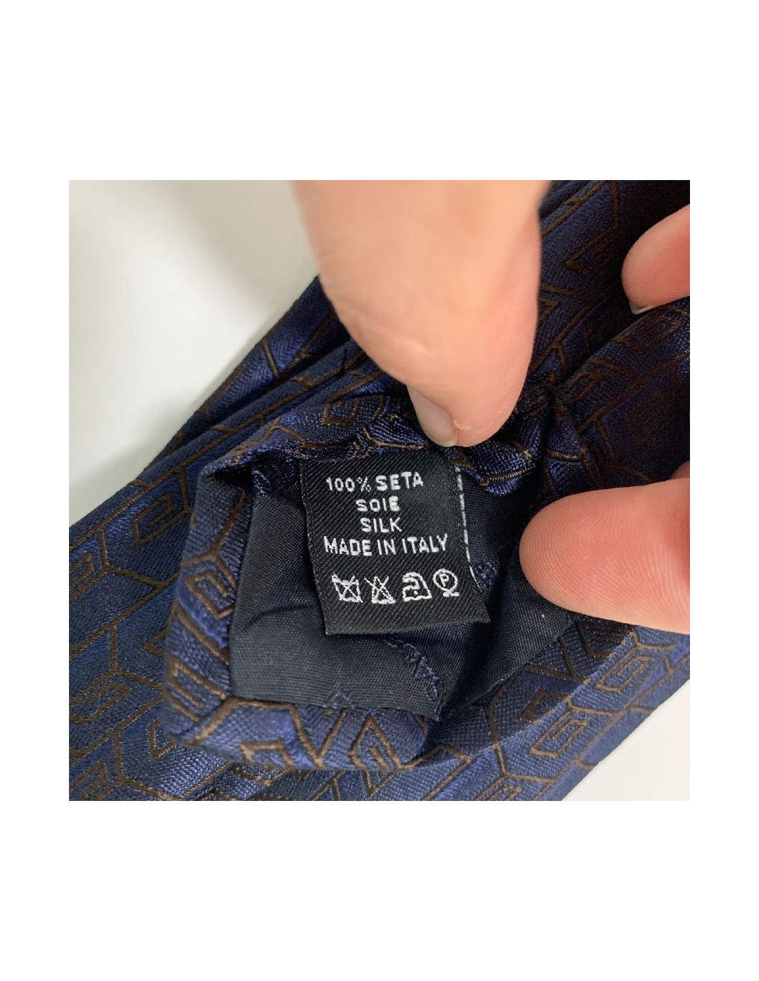 cravatte VERSACE 100% soie bleue motifs VERSACE marrons