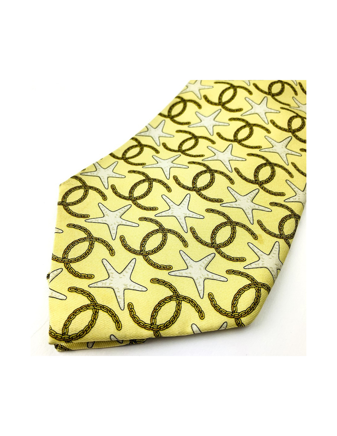 Cravate CHANEL jaune etoile des mer et CC