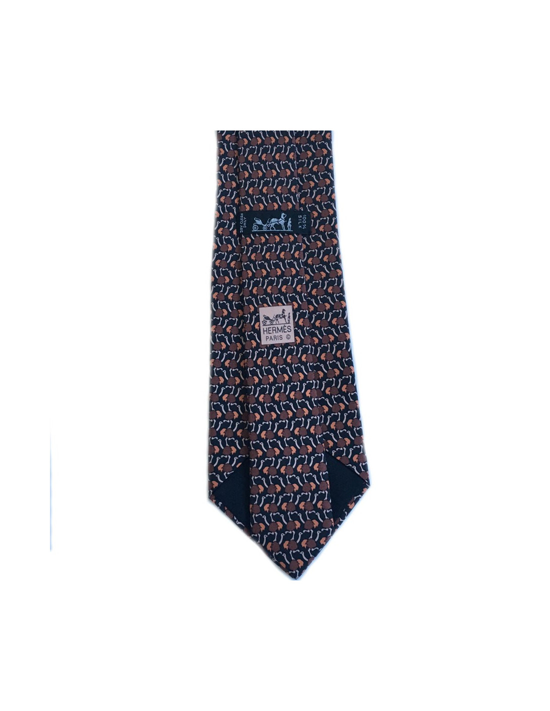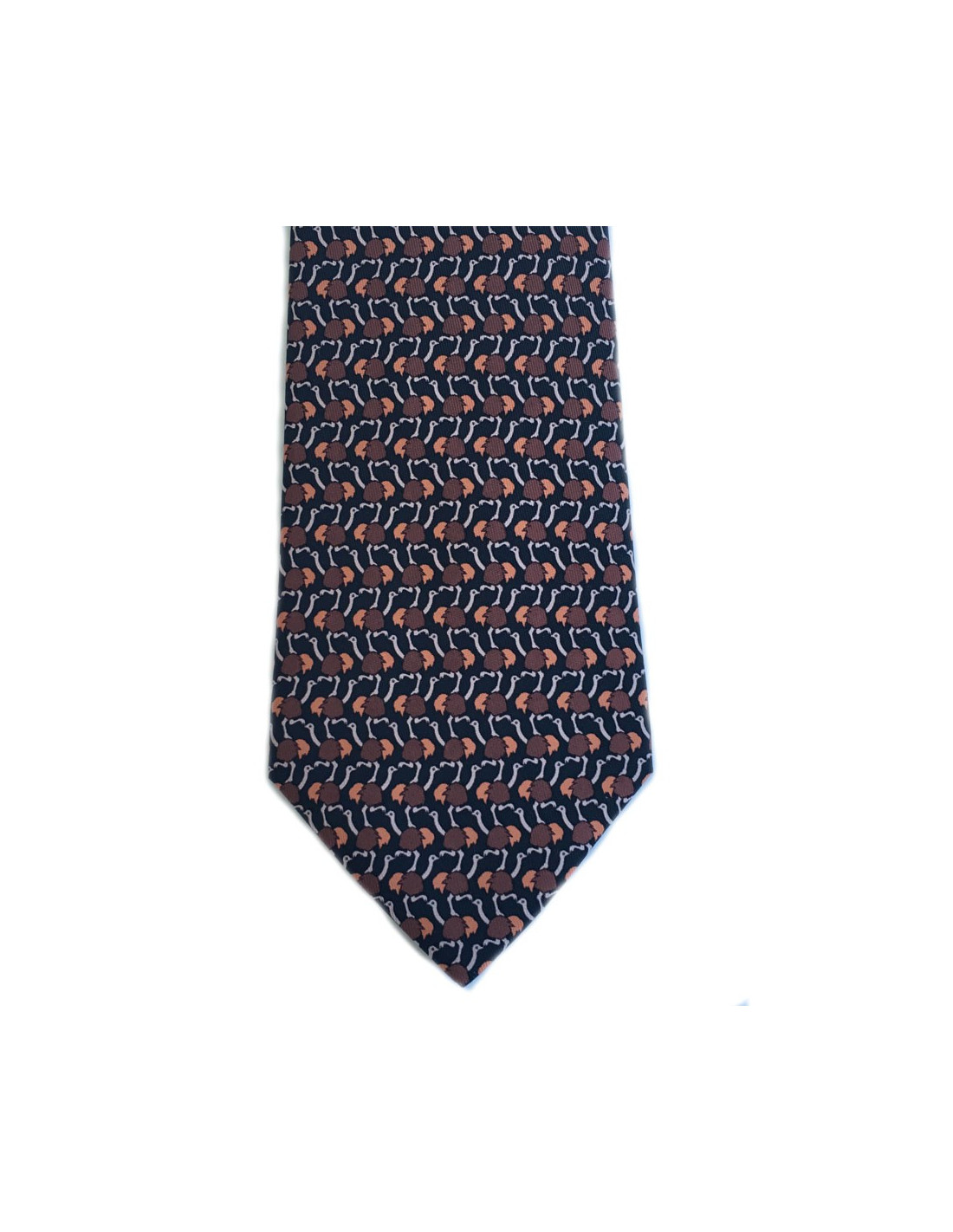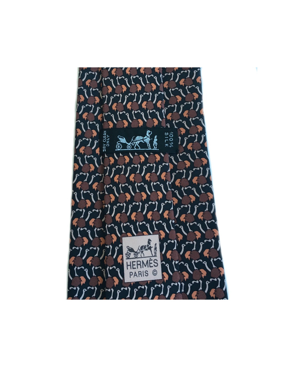 Black, Brown, orange and cream scarf HERMES tie. Reason: ostriches.