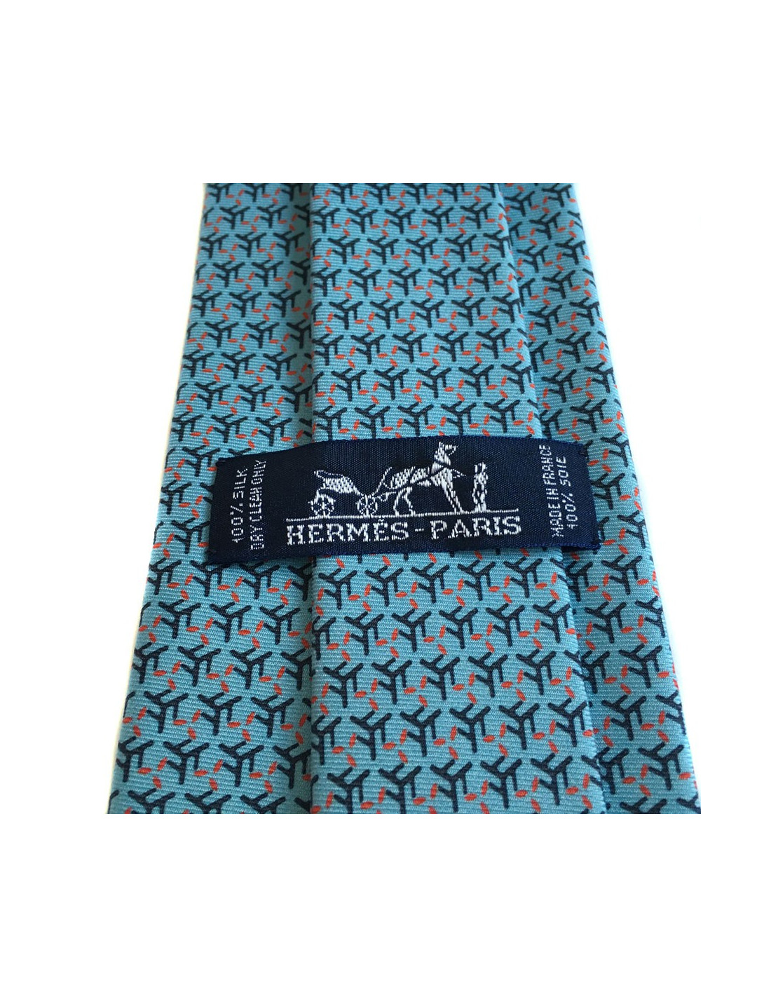 HERMÈS tie in sky blue, dark blue and red scarf. Never worn.