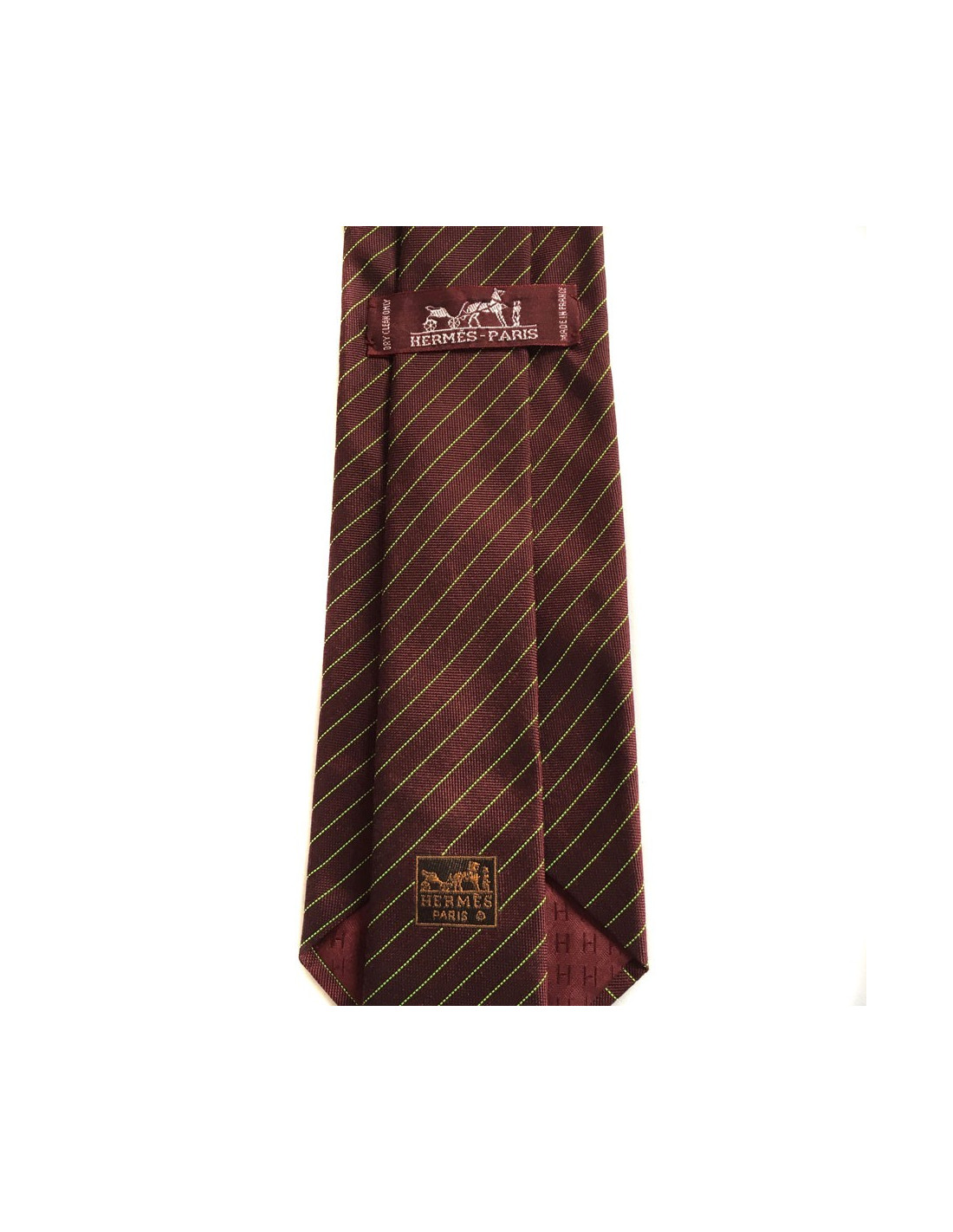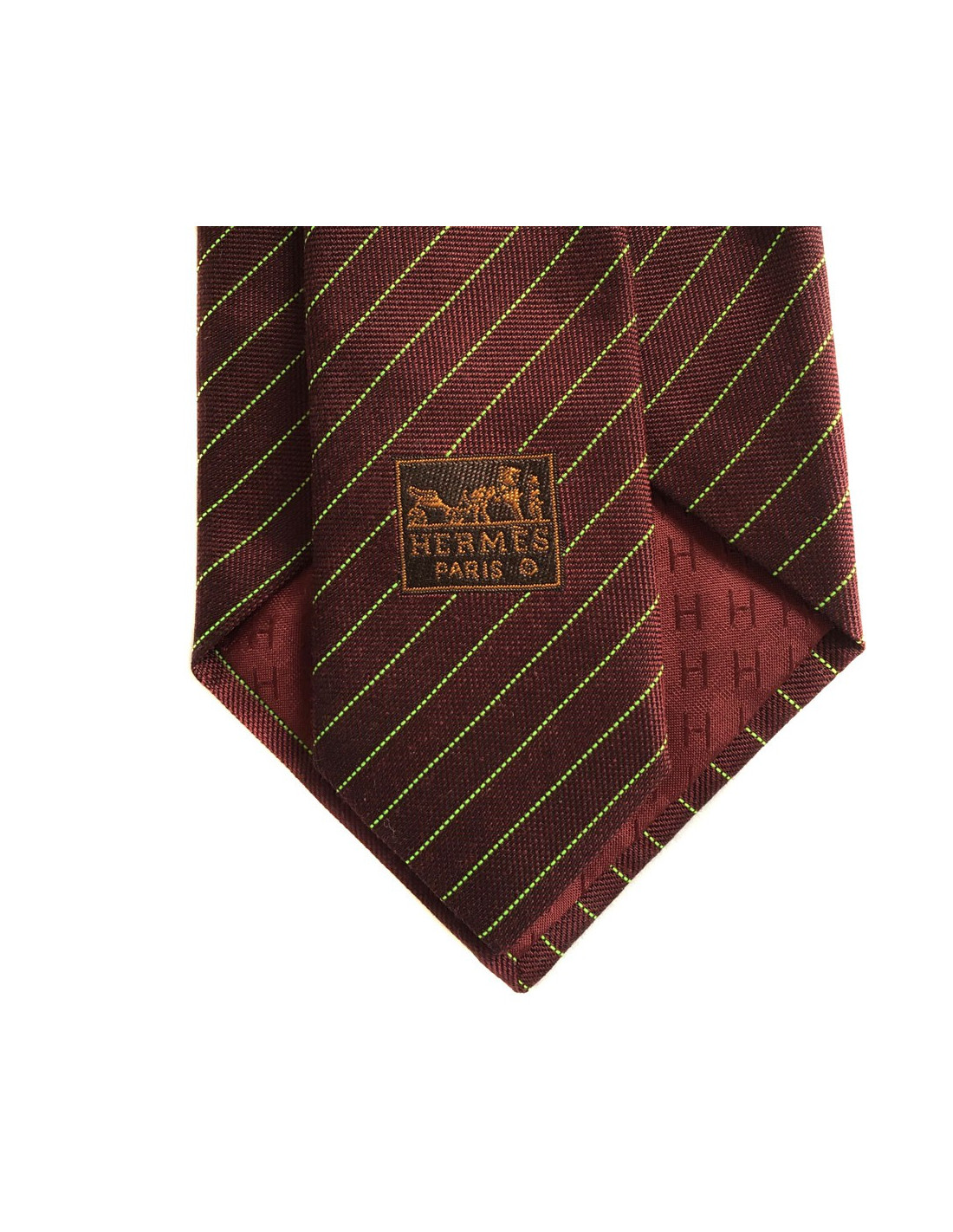 HERMÈS tie in burgundy silk and cashmere with fluo green lines