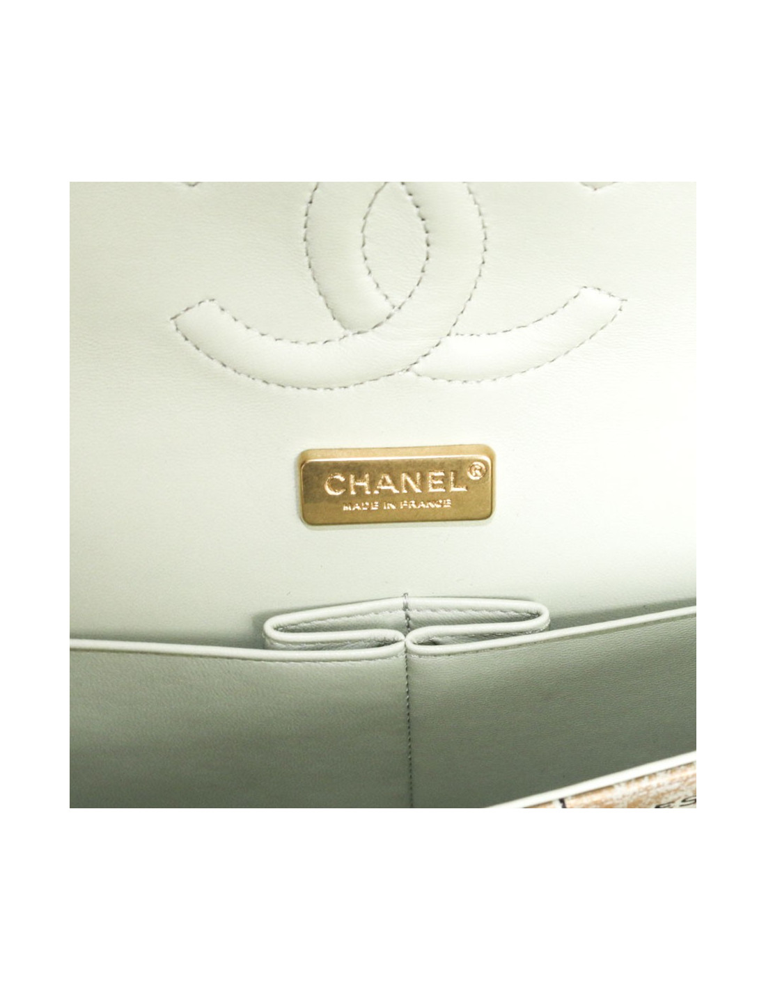 Clasp 'CC'. Double flap. The inside is in smooth green lamb leather with 3 patch pockets.