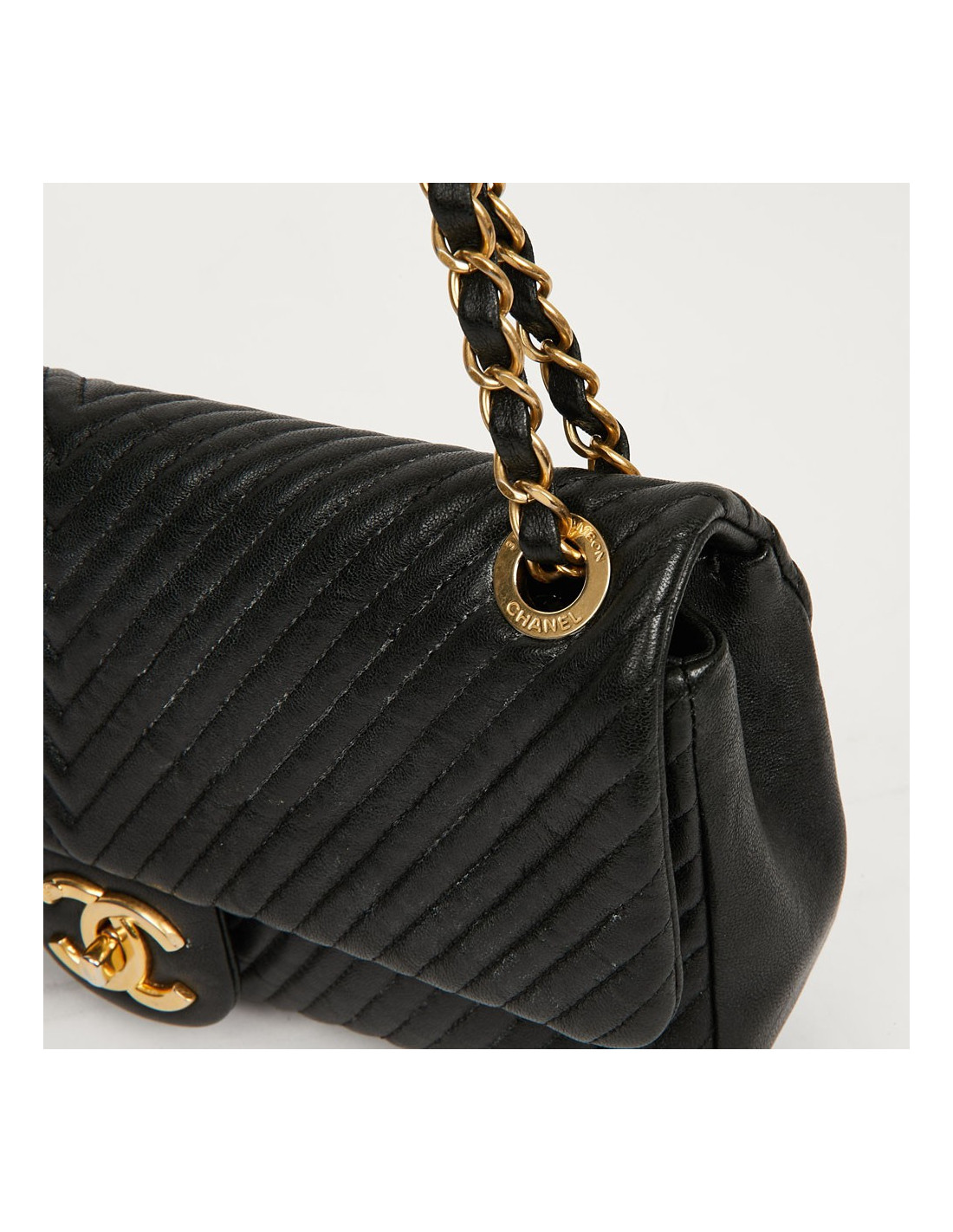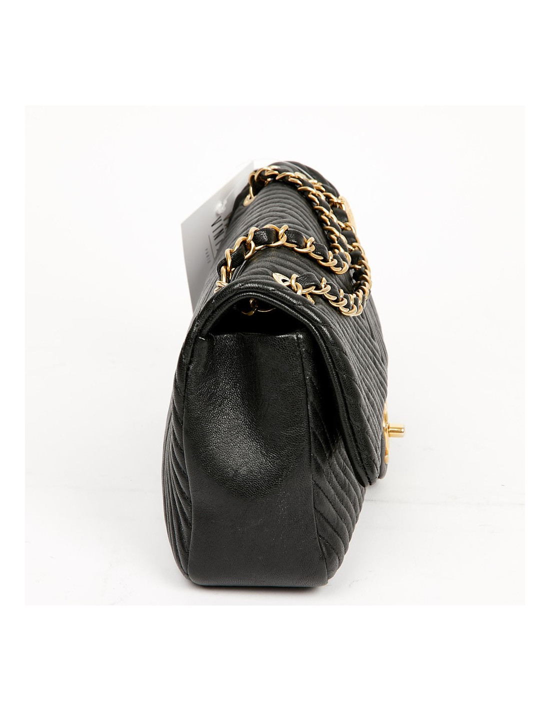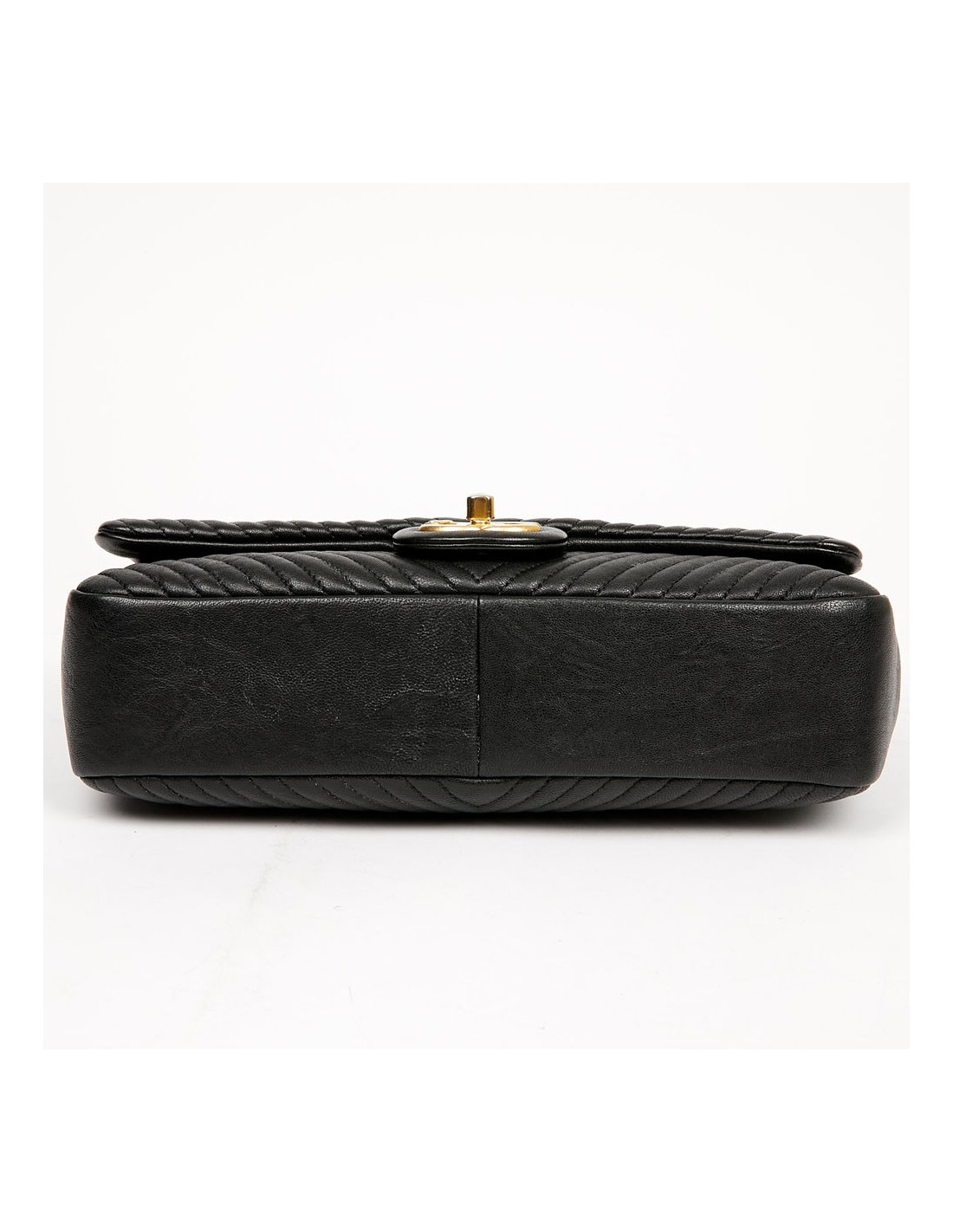 This beautiful bag from the House of Chanel is part of the Timeless family also called Classic bag. The calf leather is in quilted herringbone style with the "CC" clasp and golden hardware.
