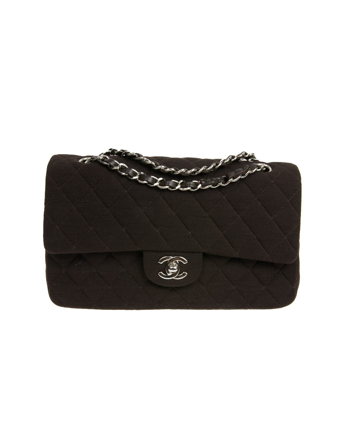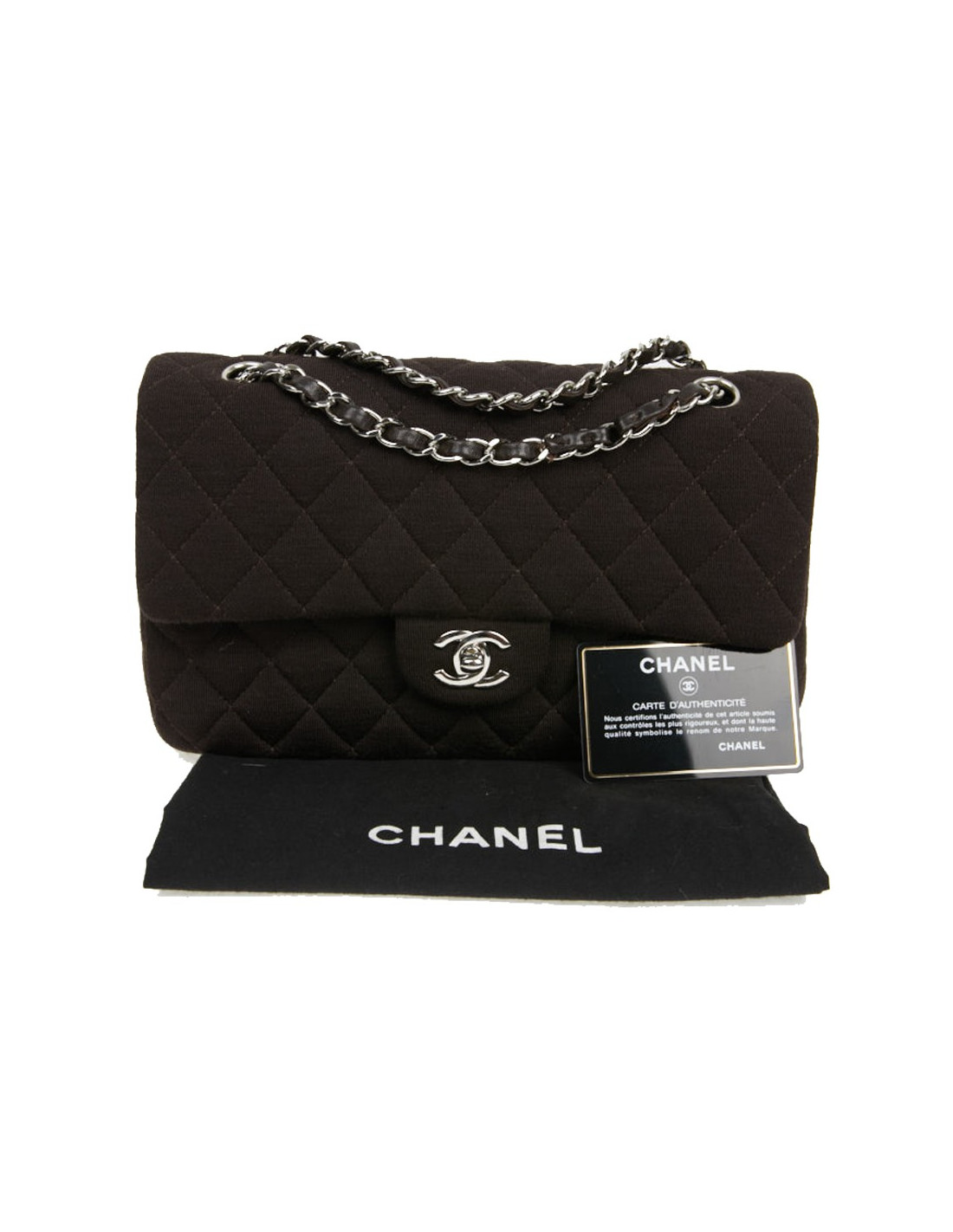 A great classic at Chanel. A handbag to wear on all occasions in brown jersey fabric.