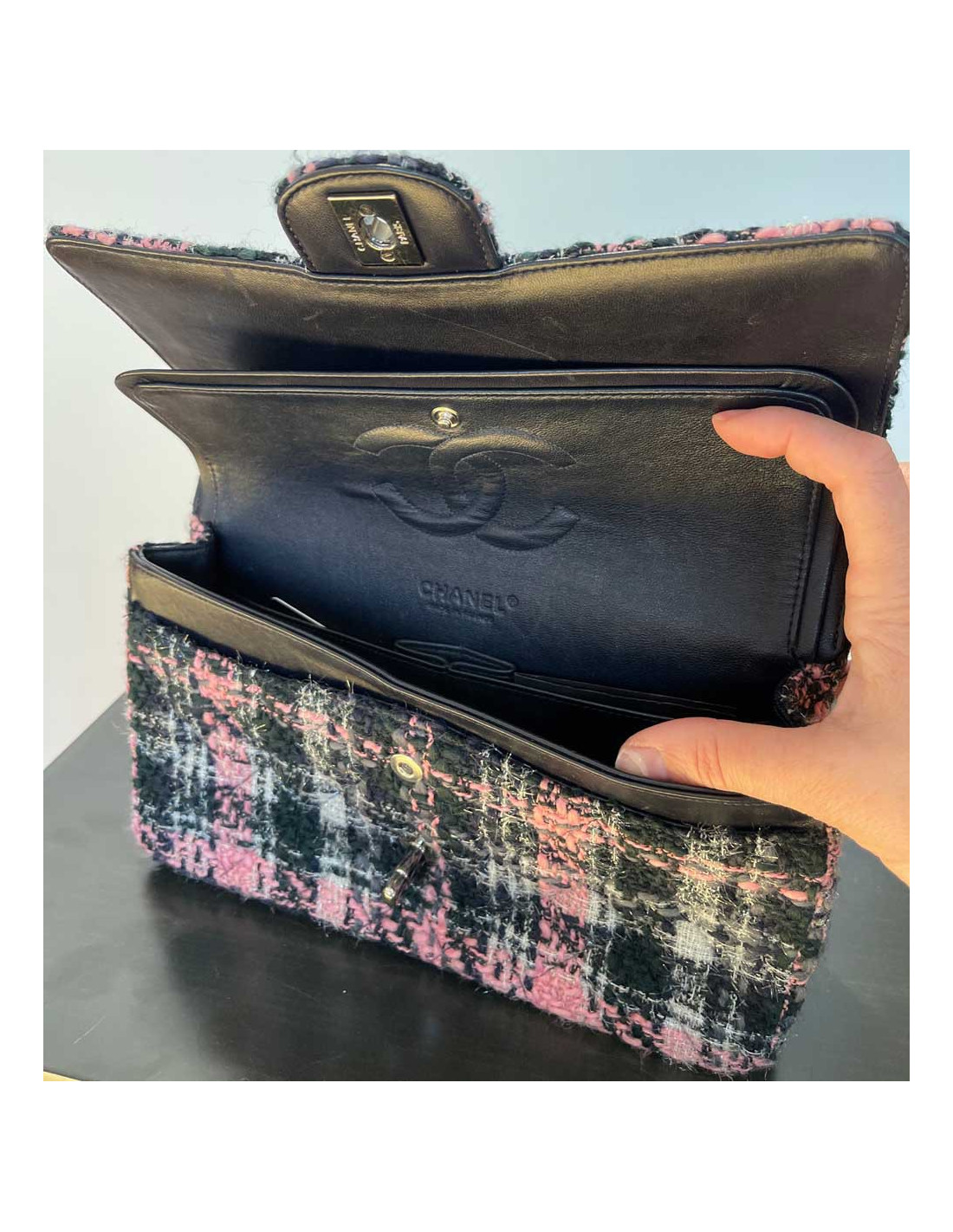 Last items in stock TIMELESS CHANEL CHANEL black quilted Timeless 25 bag CHANEL 36902 6,200.00 € CHANEL vintage black Timeless bag Condition : goodMade in FranceModel : classique 25Gender : womanMaterial : lambskin leatherLining : burgundy smooth leatherColor : blackMeasurements : 27 x 19 x 8 cmShoulder strap : 88 simple, 53 doubleHologram : 0916...year : 1986-1988Hardware : gold plated metalDetails : classic vintage Chanel. Good condition, as the... Add to cart