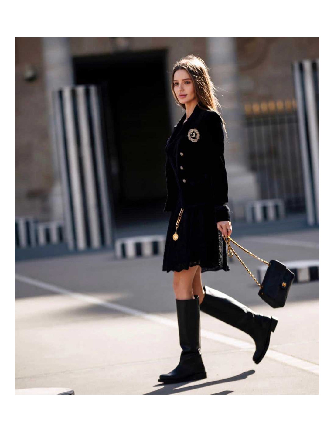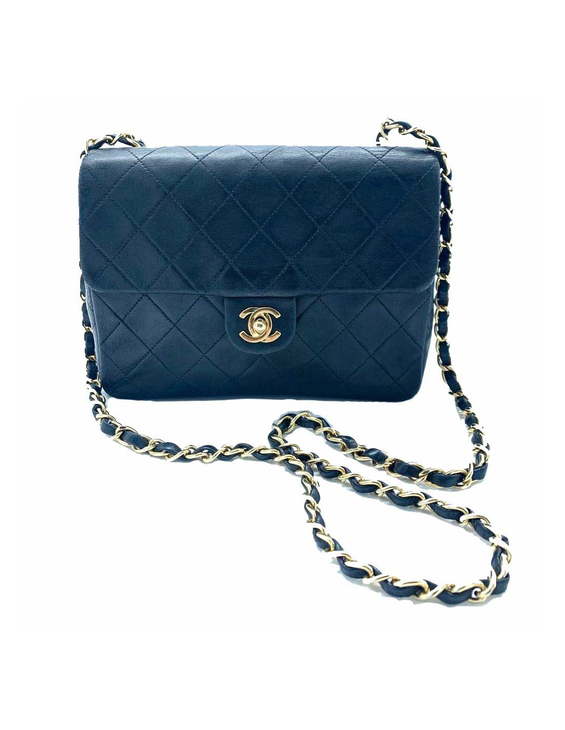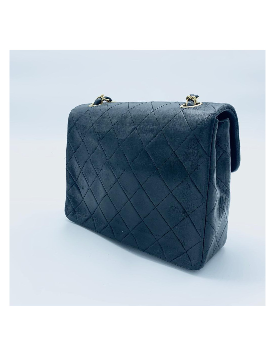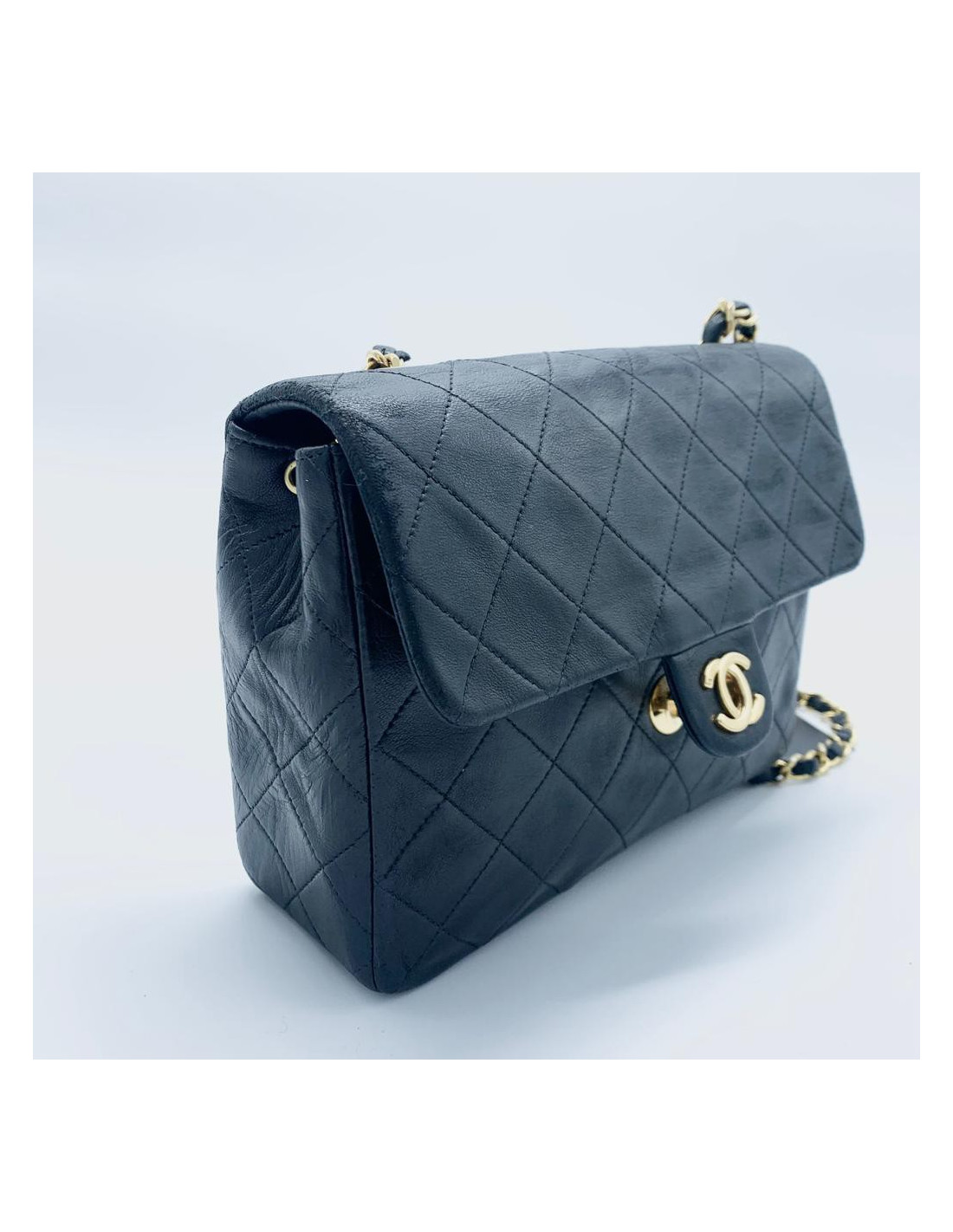 CHANEL vintage crossbody mini bag in black lambskin leather. It is in good condition. The jewelry is in gilt metal.