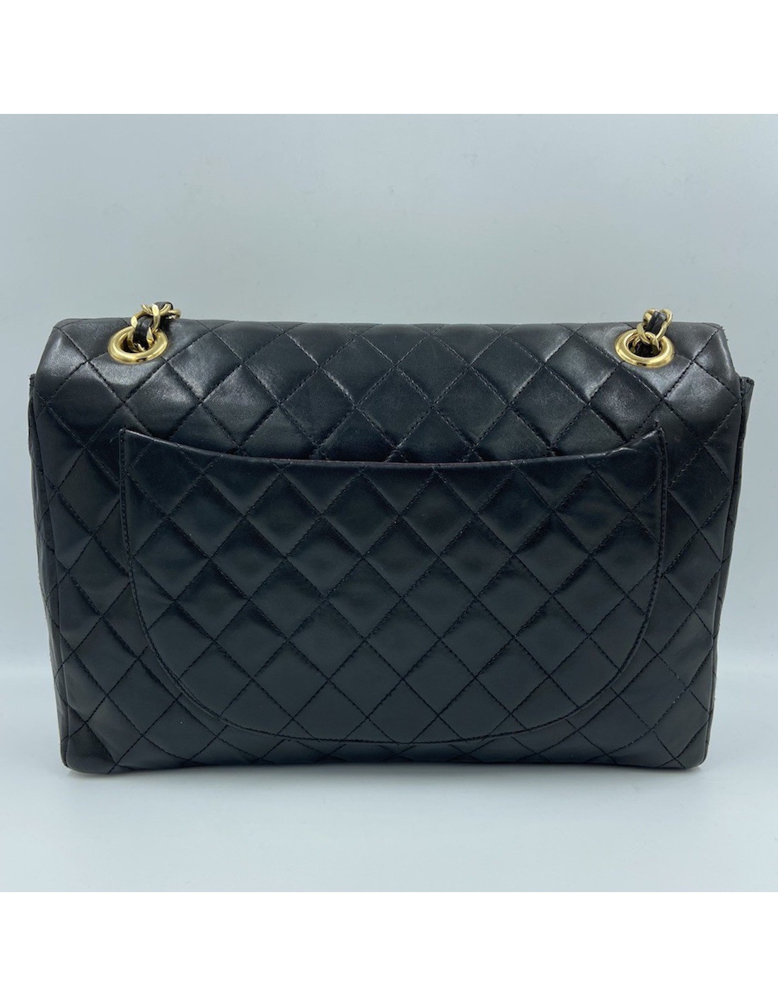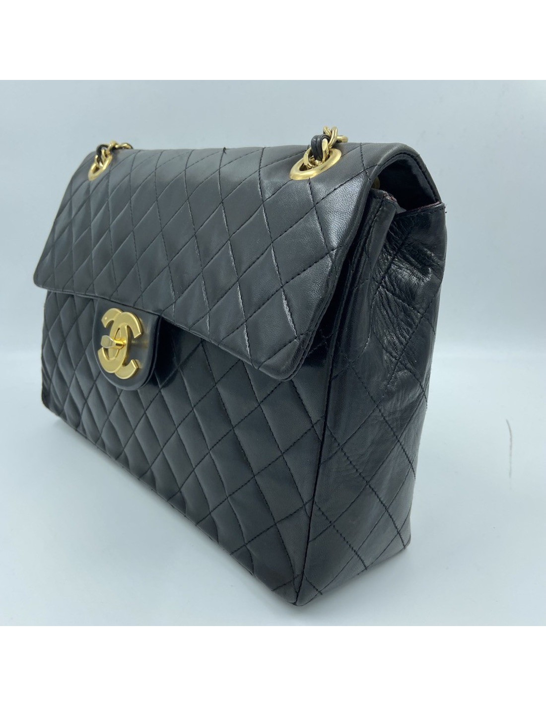 Vintage Maxi jumbo CHANEL FlapBag in black Lambskin Leather
