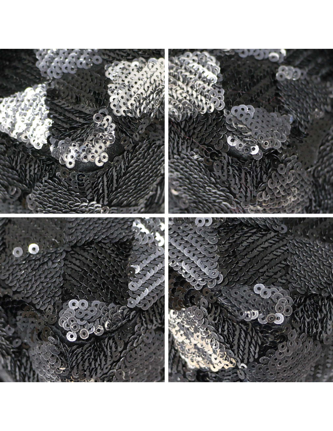 Details : checkerboard pattern of black and dark grey sequinned checks