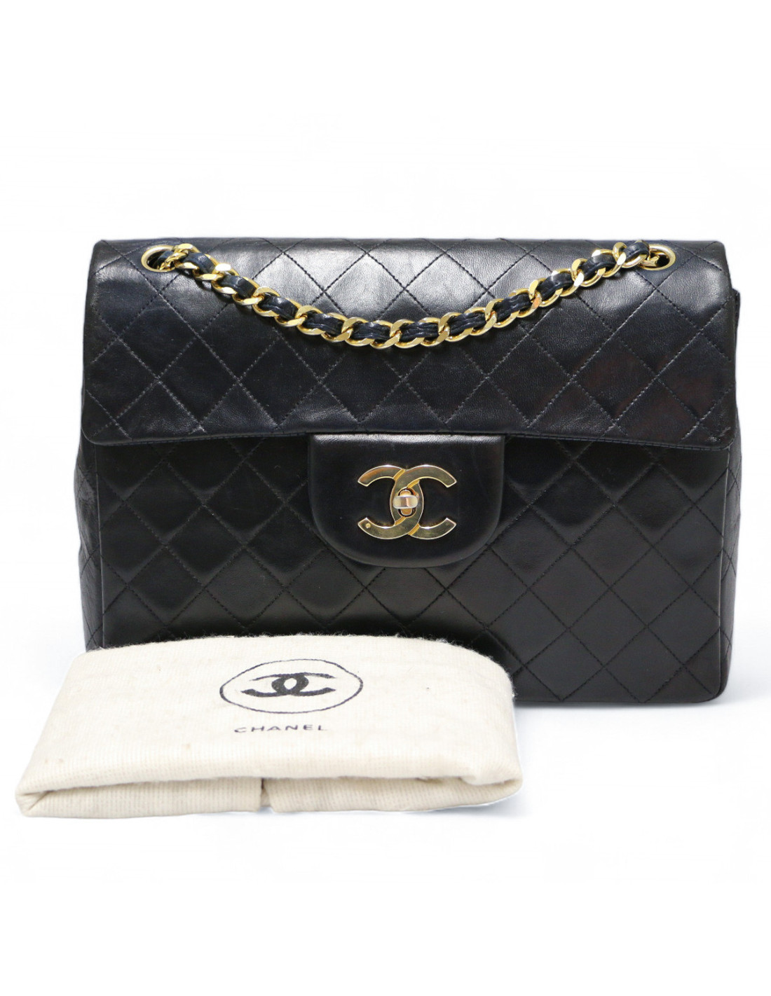 Last items in stock TIMELESS CHANEL CHANEL Vintage Maxi jumbo CHANEL 33317 8,500.00 € CHANEL Collector Maxi jumbo black big CC logo Condition : very good, slight scratches on front, not very visibleMade in FranceGender : unisexCollection : TimelessMaterial : calfskin leatherLining : burgundy leatherColor : blackMeasurements : 33.5 x 24 x 10 cmShoulder strap : simple 134 cm, double 77 cmHardware: 24K gold plated metalDetails: Vintage.... Add to cart