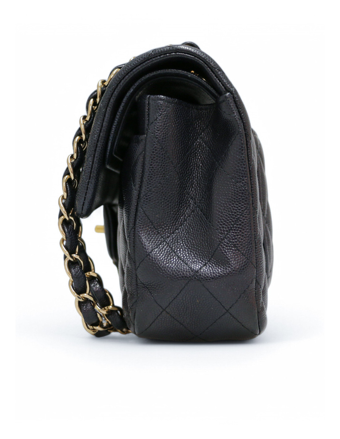 Last items in stock TIMELESS CHANEL CHANEL Jumbo bag in black grained leather CHANEL 30897 6,800.00 € CHANEL Jumbo bag in black grained leather Condition : good (slight tear under the flap)Made in FranceMaterial: grained leatherColor : blackLining: burgundy leatherMeasurements : 30 x 20 x 9 cmHologram : before 1980 Add to cart