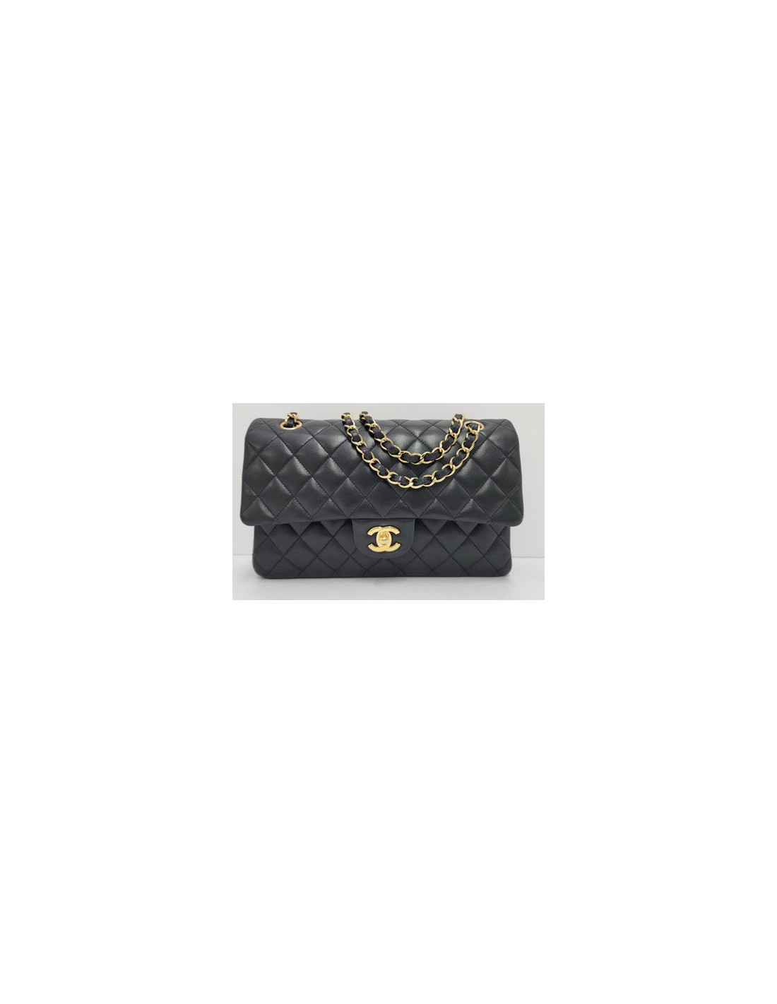 Classique médium double flat CHANEL agneau noir