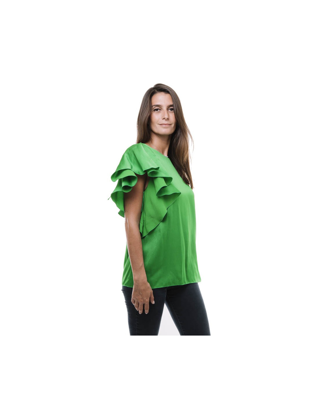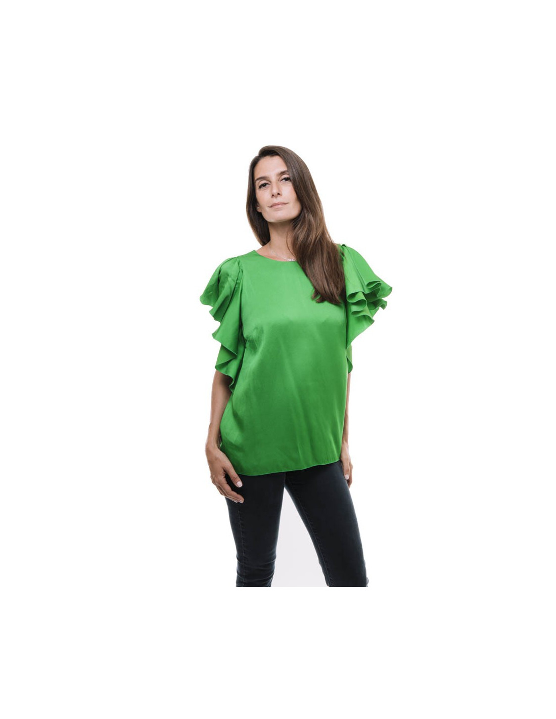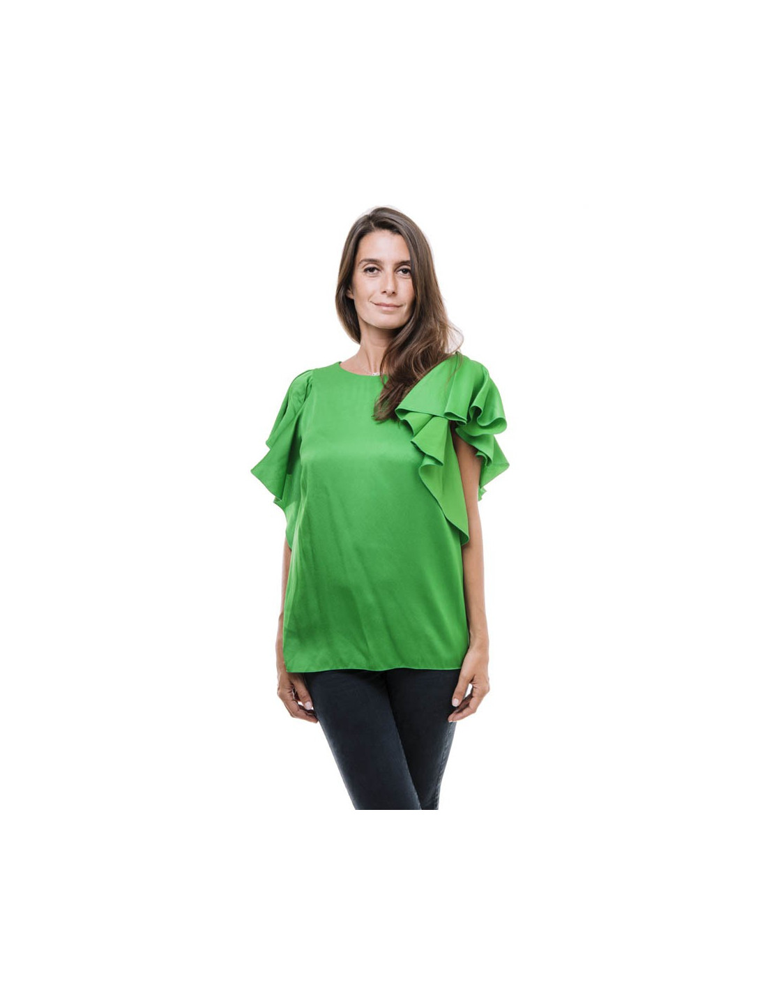 LANVIN blouse in green silk crepe size 36FR