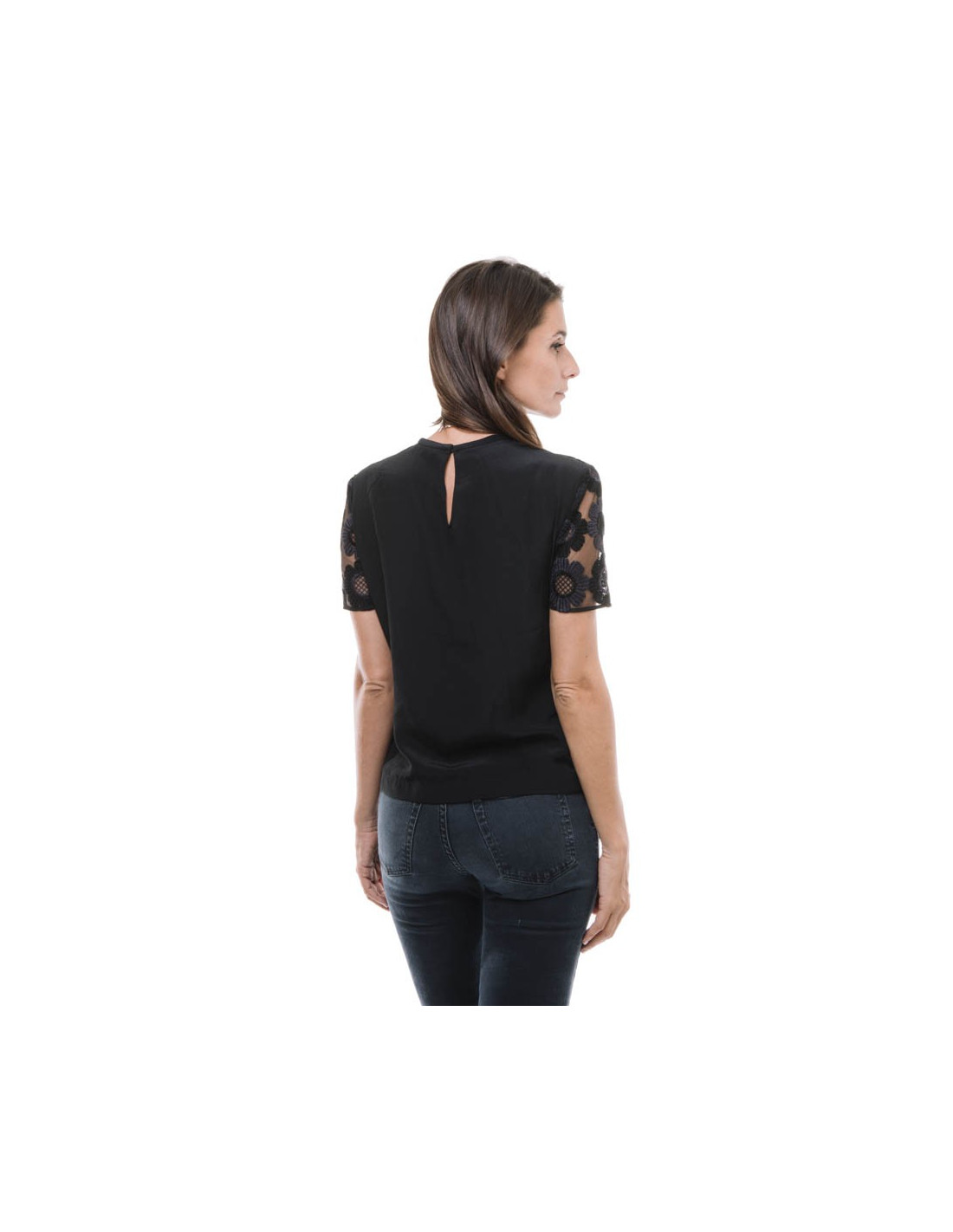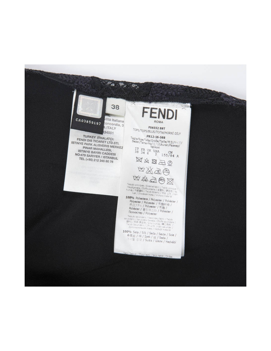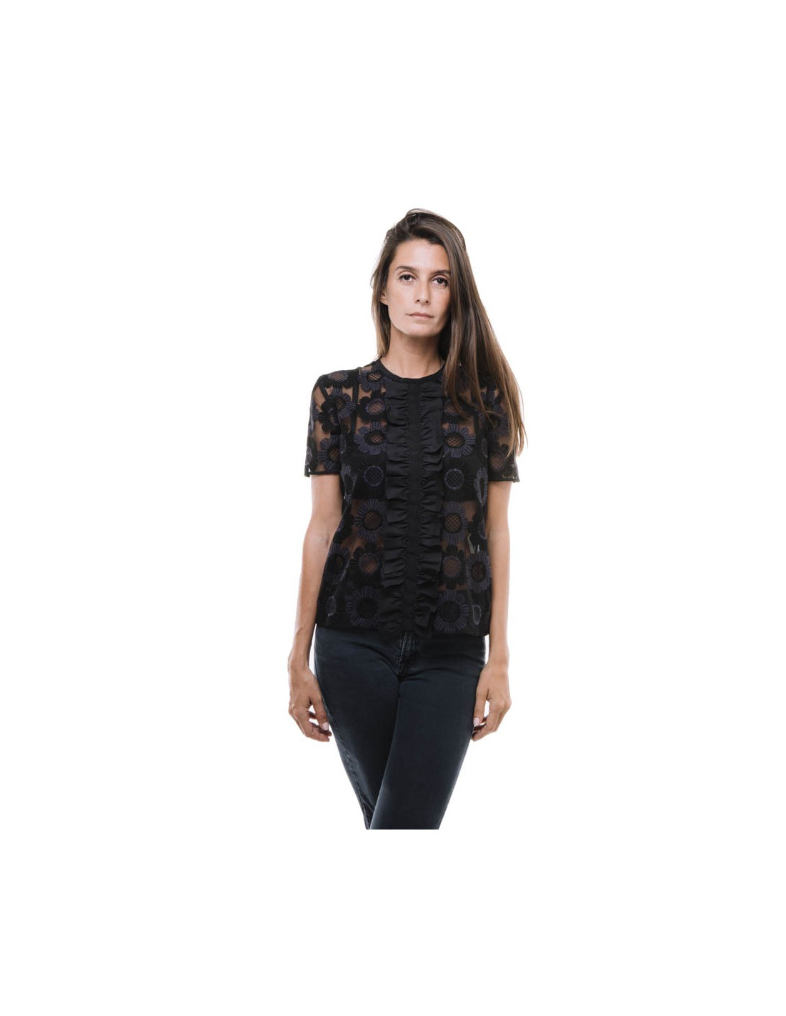 FENDI blouse T38 in tulle embroidered with black and purple flowers