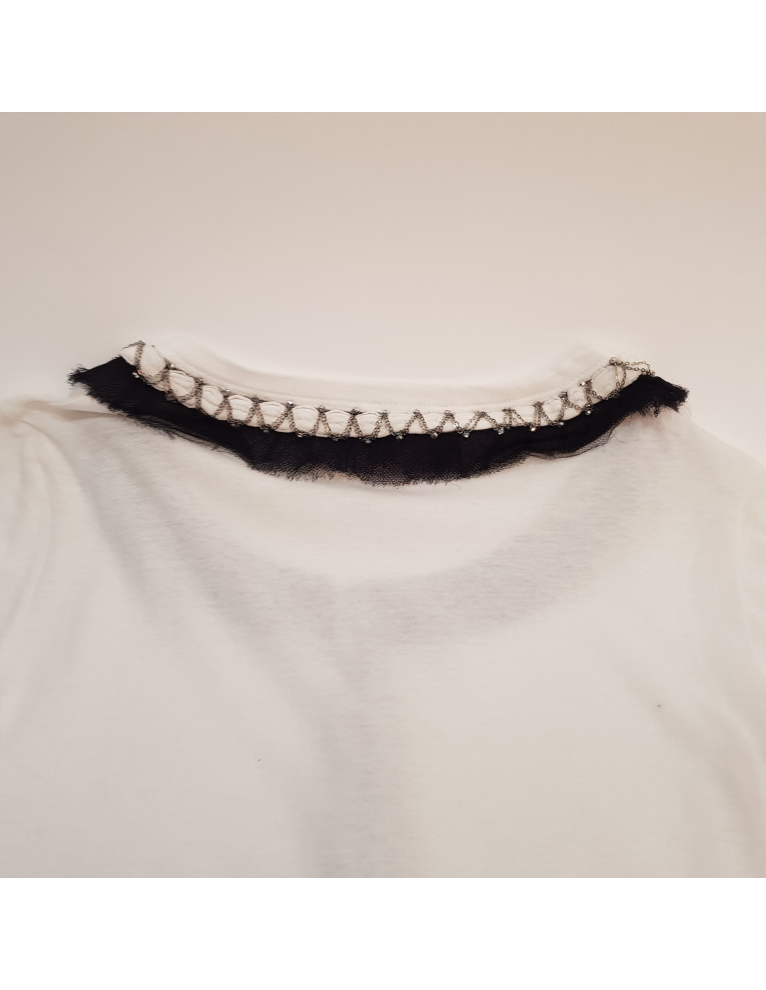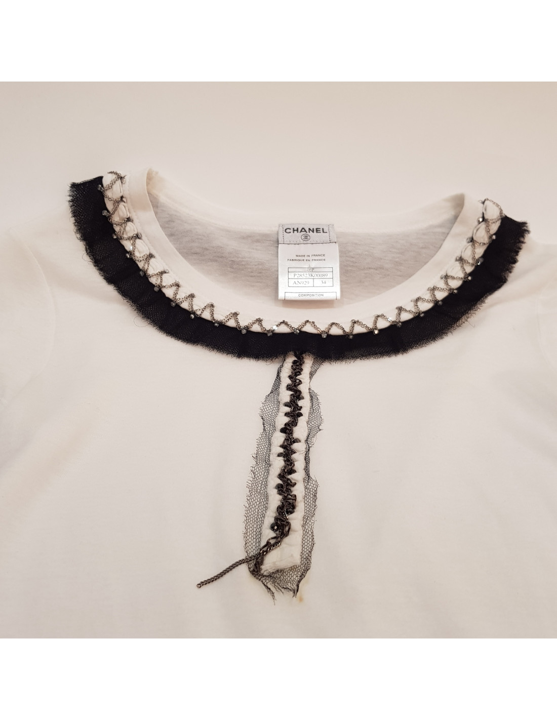 Chanel white cotton t-shirt with chains and rhinestones size 34FR