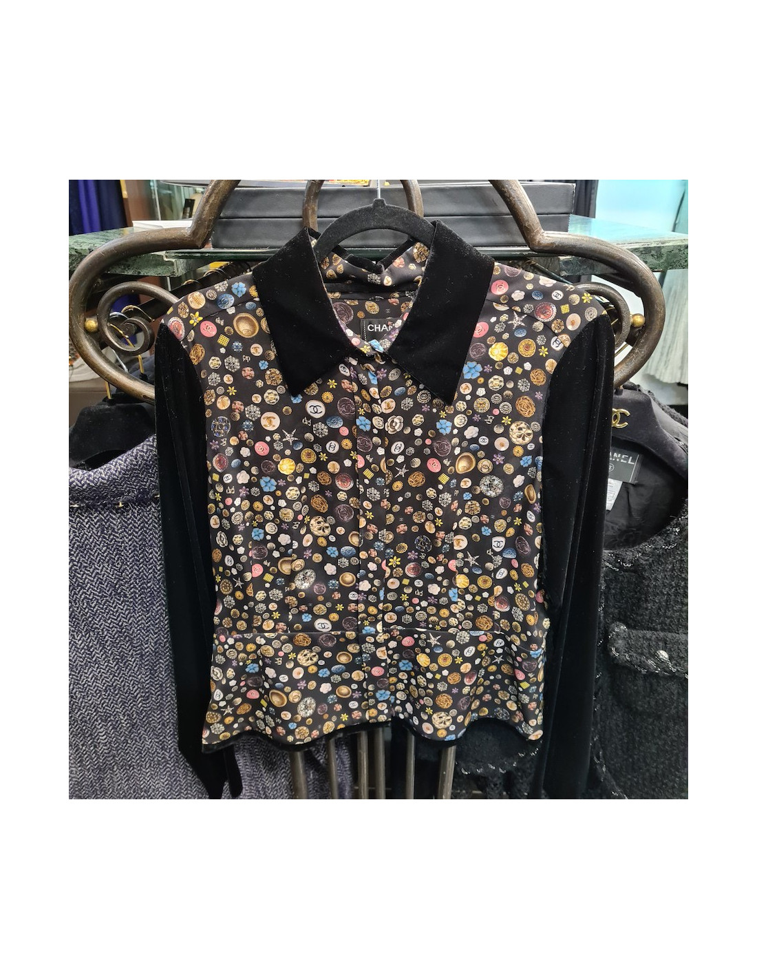 Blouse T 42 CHANEL soie imprimé et velours noir