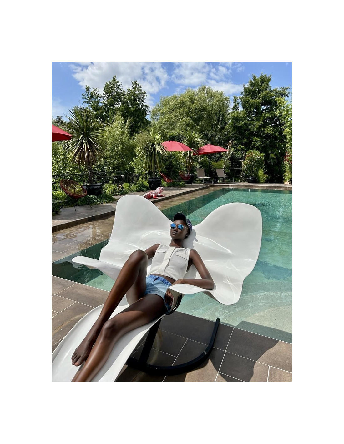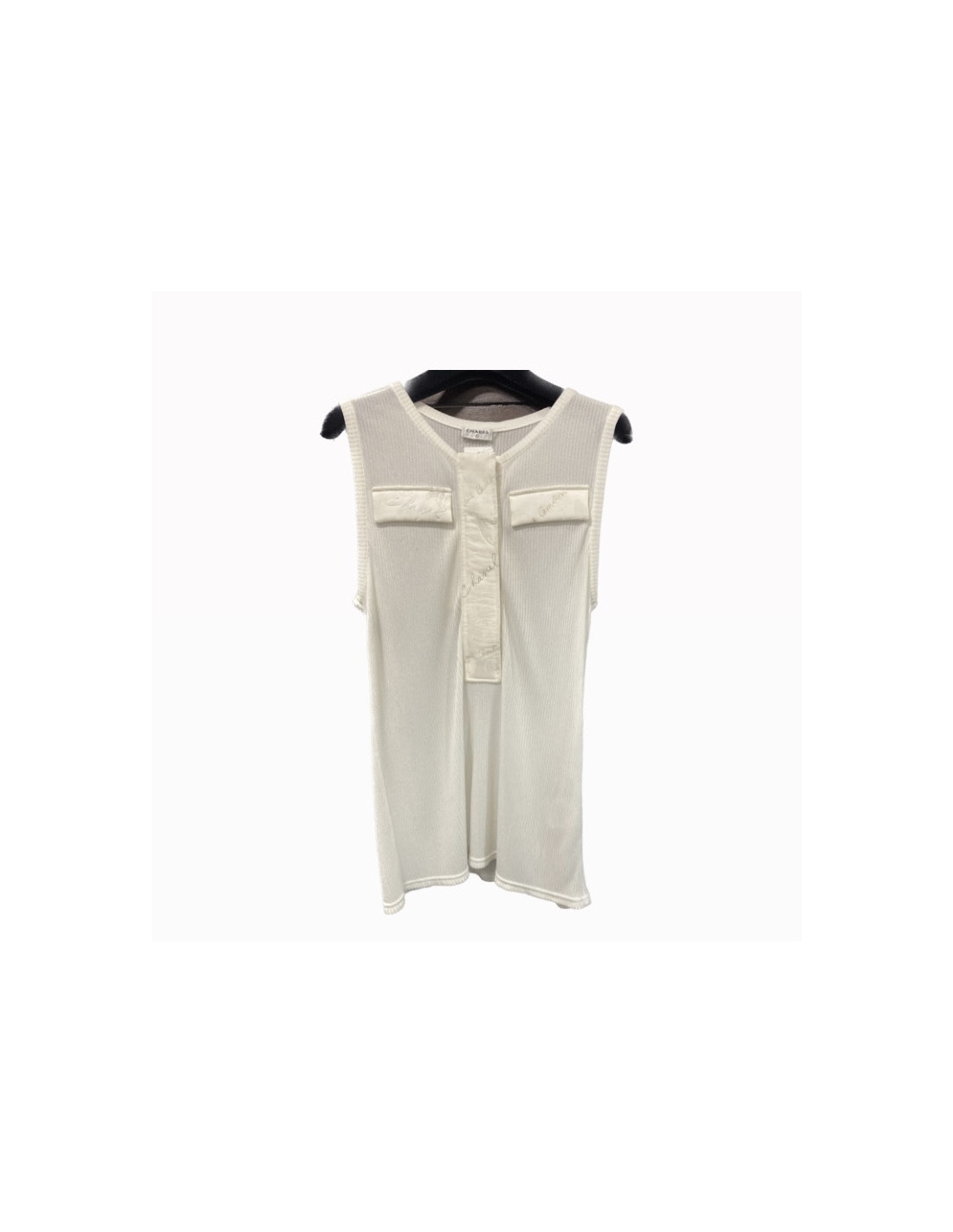 Details : tank top in fine rib knit (viscose), silk panels with embroidery, 5 hidden buttons on panel