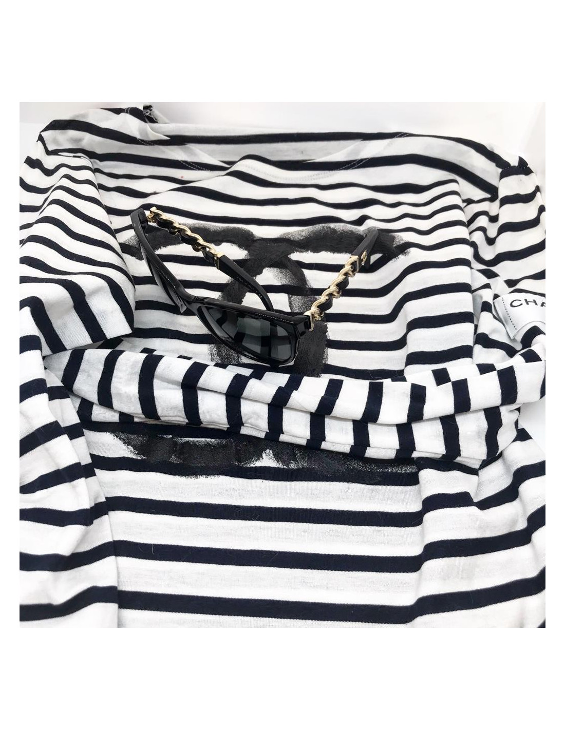 Online only Last items in stock TOPS/BLOUSES CHANEL cashmere sweater with swarovski crytals CHANEL 16905 1,800.00 € CHANEL cashmere sweater with swarovski crytals Condition: very good Size: 42FR Model: sweater Gender: woman Materials: cashmere, swarovski crystals Colors: black, transluscent, gold Year: Paris- Monte Carlo 2007 Measurements: shoulders: 33cm, bust:44cm, height: 67cm, sleeves length: 63cm Details: Sublime Chanel size 42 sweater in black cashmere from the... Add to cart