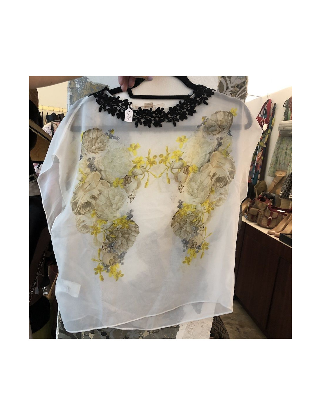-60.00 € Last items in stock TOPS/BLOUSES Black silk GIVENCHY blouse GIVENCHY 12913 470.00 € 530.00 € Sublime black silk GIVENCHY blouse Not size but label corresponds to a size 38 Length: 65 cm, Shoulder width: 38 cm Sleeve length: 63 cm,. Chest: 46 cm 100% silk, set with yellow stones, V neck Add to cart