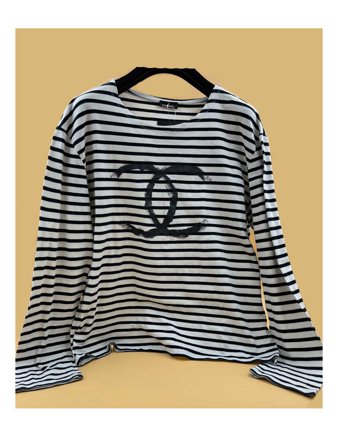 Last items in stock TOPS/BLOUSES CHANEL floral crop top CHANEL 31292 2,600.00 € CHANEL floral crop top, size 38FR Condition : very goodMade in France Model: crop topColor : multicolorCruise collection 1996Measurements: scalloped shoulders: 36 cm, underarm width 40 cm, total length 31 cm. Details: Collector's item. A highly sought-after piece from the 90s. To be worn without any restraint all summer long. Add to cart