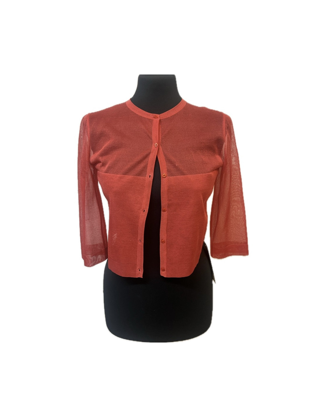 Online only Sold TOPS/BLOUSES Hermes v-neck sweater Twillaine HERMES 26878 570.00 € HERMES v-neck sweater Twillaine, silk and knit Condition: never worn Made in Italy Size:36/38FR Materials: unknown Colors:orange, blue, green, pink Measurements: shoulders: 41cm, total length: 59cm, bust: 49cm, v length: 18cm Details: Short sleeved sweater. The front is in printed silk twill in autumnal tones of pink, blue and sandalwood. The silk knit... View