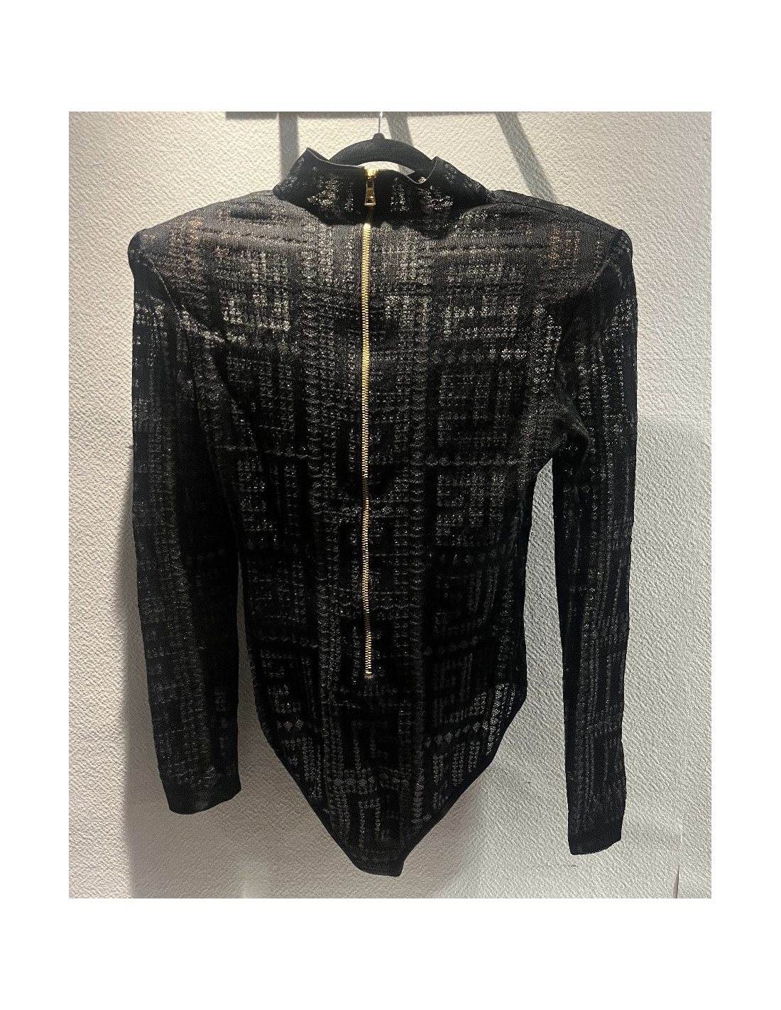 Last items in stock TOPS/BLOUSES GIANNI VERSACE embroidered silver bodysuit VERSACE 27093 650.00 € GIANNI VERSACE embroidered see through silver bodysuit Materials : organza, beads, rhinestonesColor : silverCondition : very goodSize: 38FR AUTHENTICITY CERTIFIED by our expert team since 1998. Add to cart