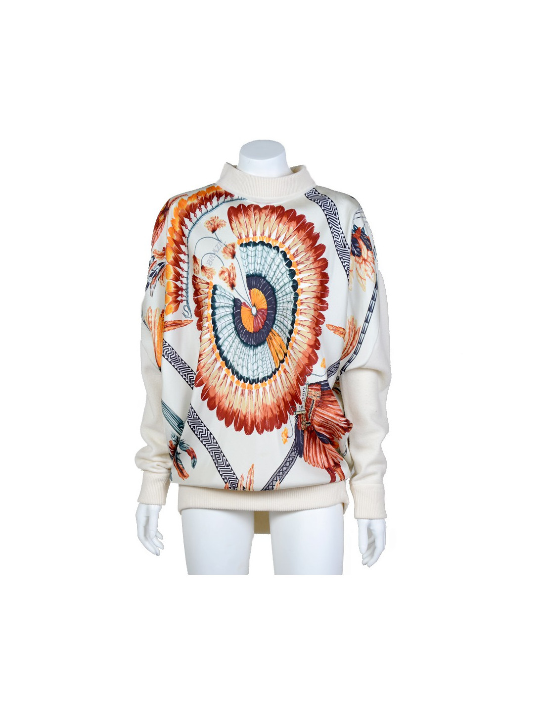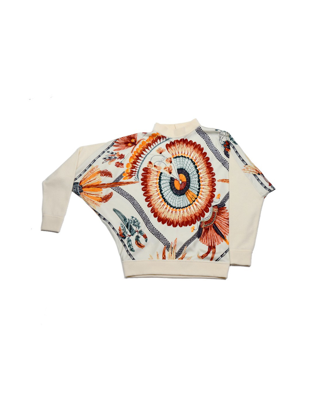 All blouse and pants HERMES silk and cashmere patterns "feathers"