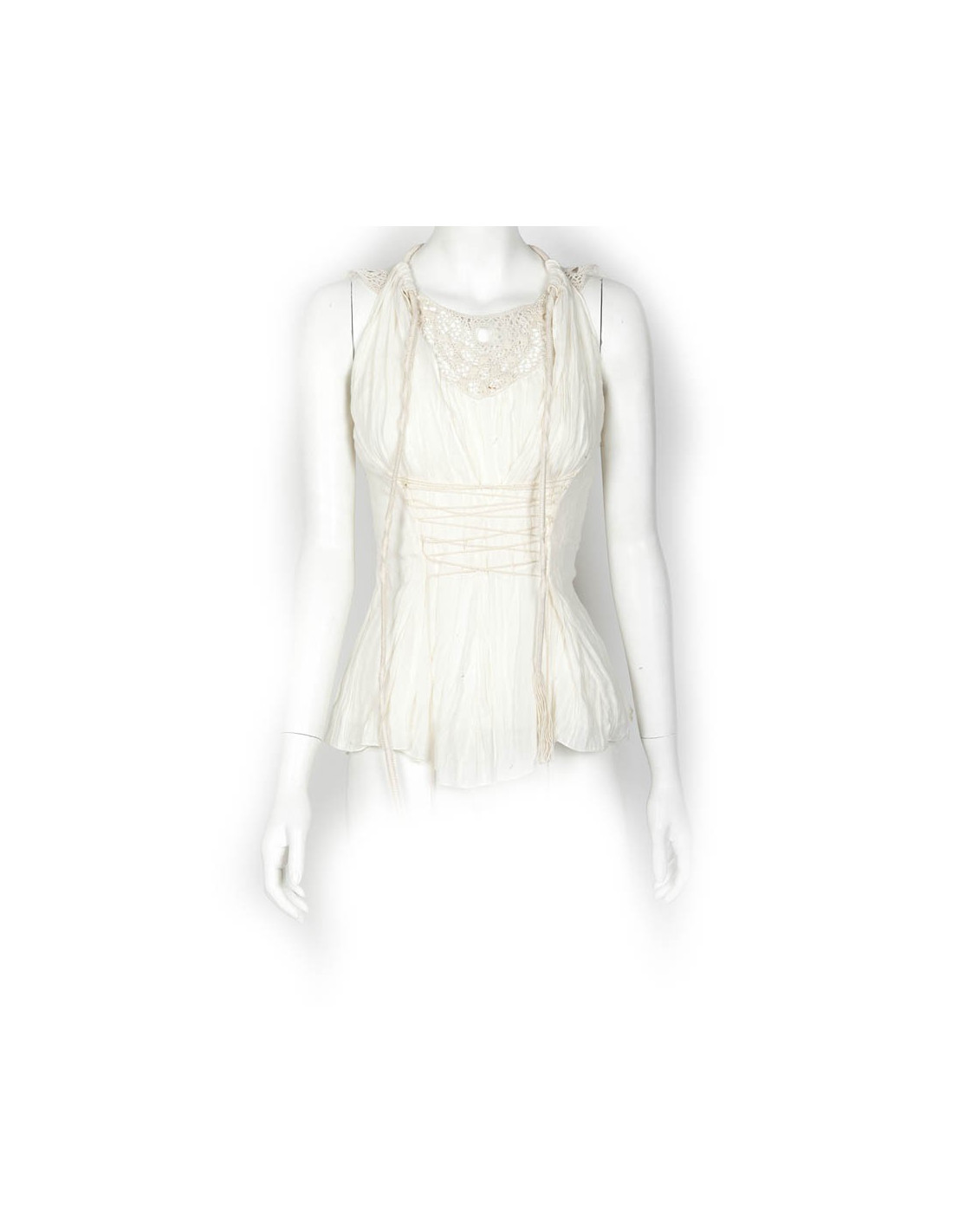 Last items in stock TOPS/BLOUSES Blouse T 36 CHANEL sans manches fils argent sur soie beige CHANEL 23957 550.00 € Add to cart