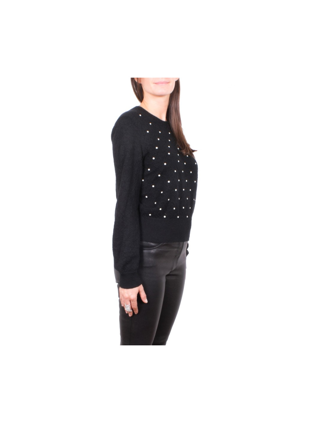 Elegant Chanel in mohair and silk black sweater embroidered on the front of pearls Pearly.
