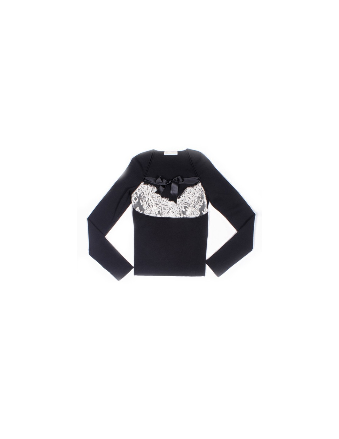 Top Black wool, cut white lace at the level of the chest as well as a double black ribbon satin VALENTINO. Size L...p >