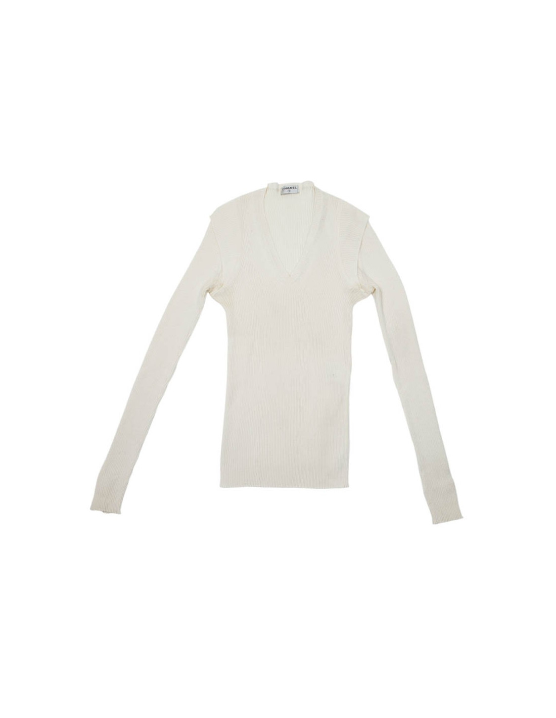 Last items in stock TOPS/BLOUSES Blouse T 36 CHANEL sans manches fils argent sur soie beige CHANEL 23957 550.00 € Add to cart