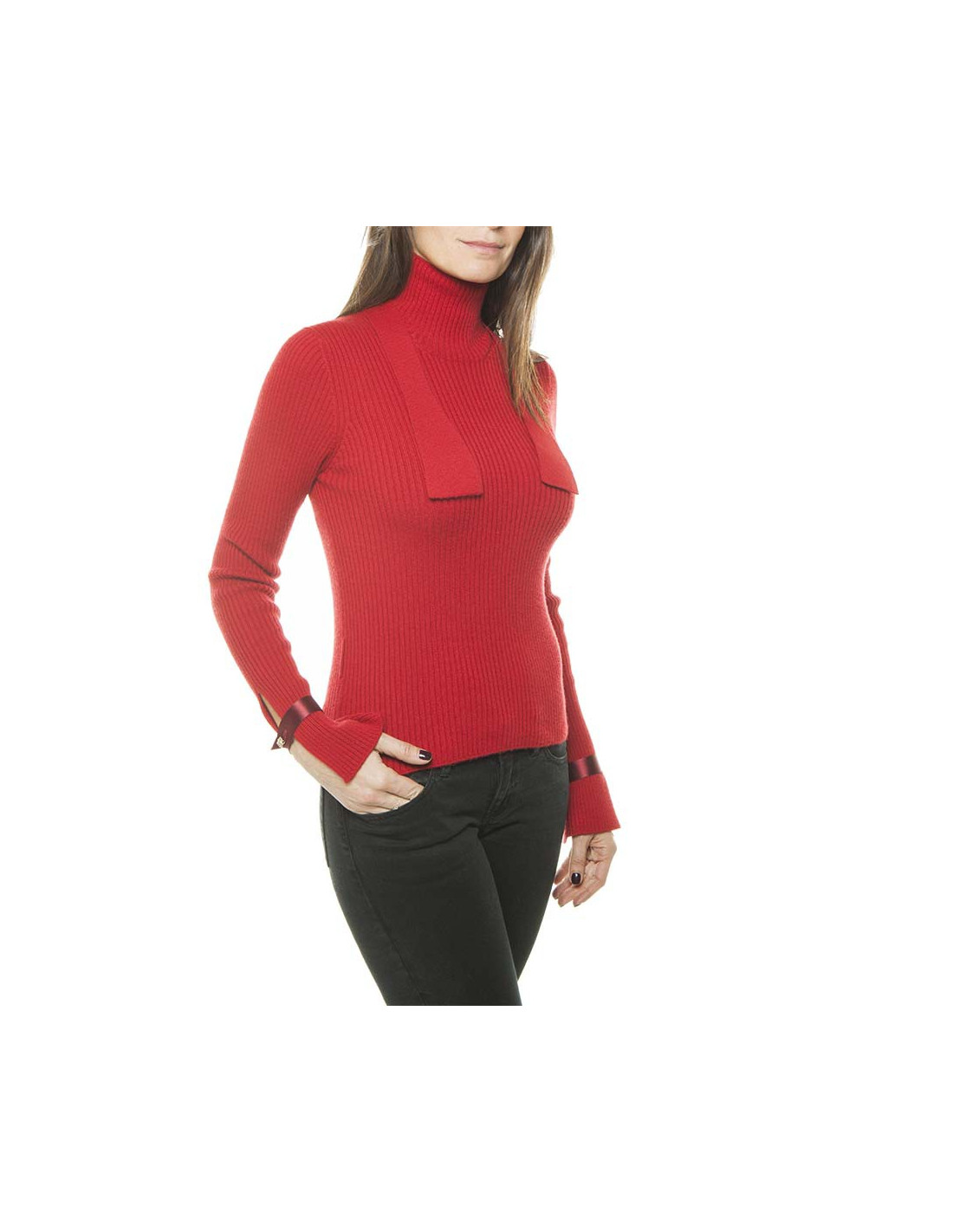 CHANEL T38 red Cashmere Turtleneck