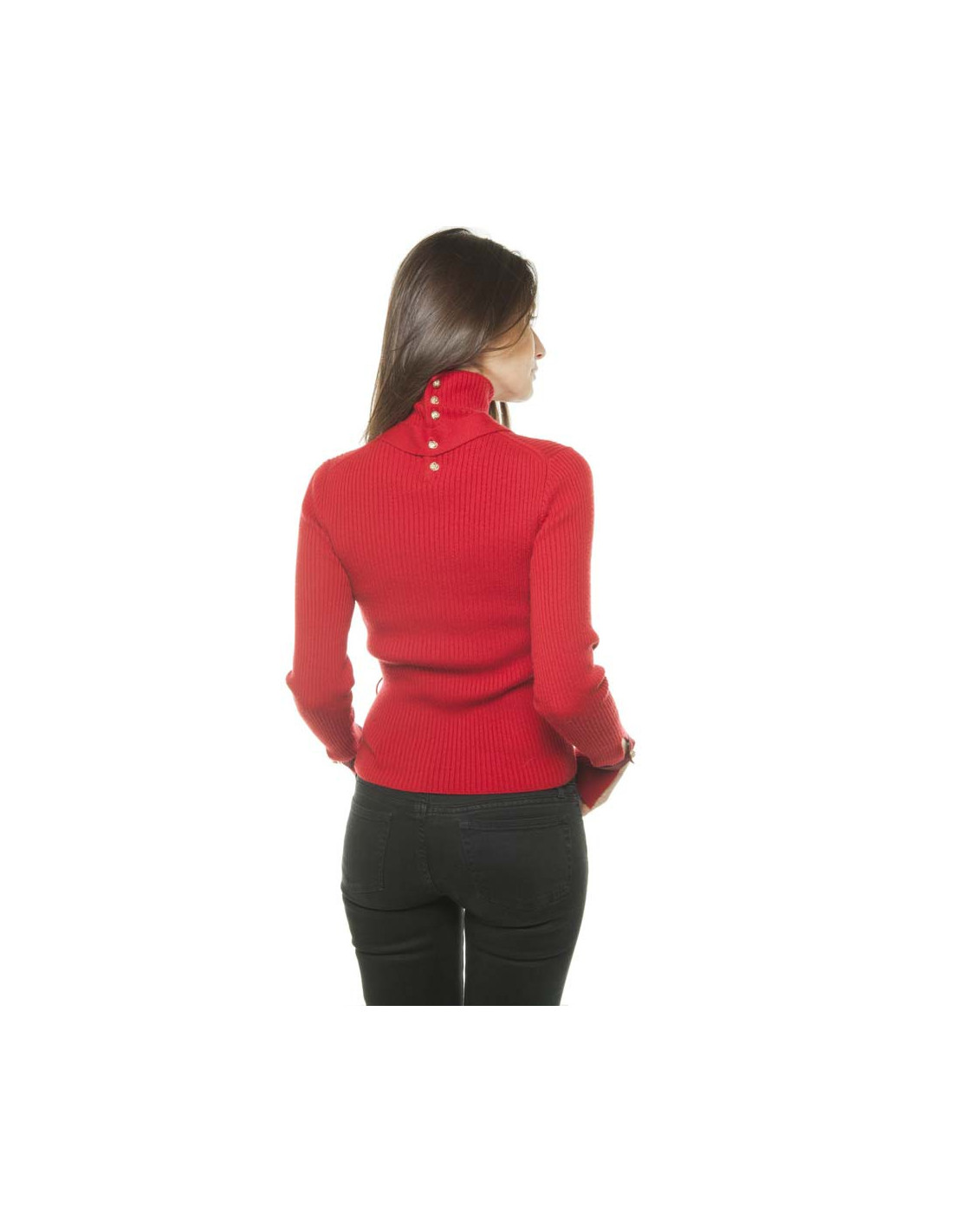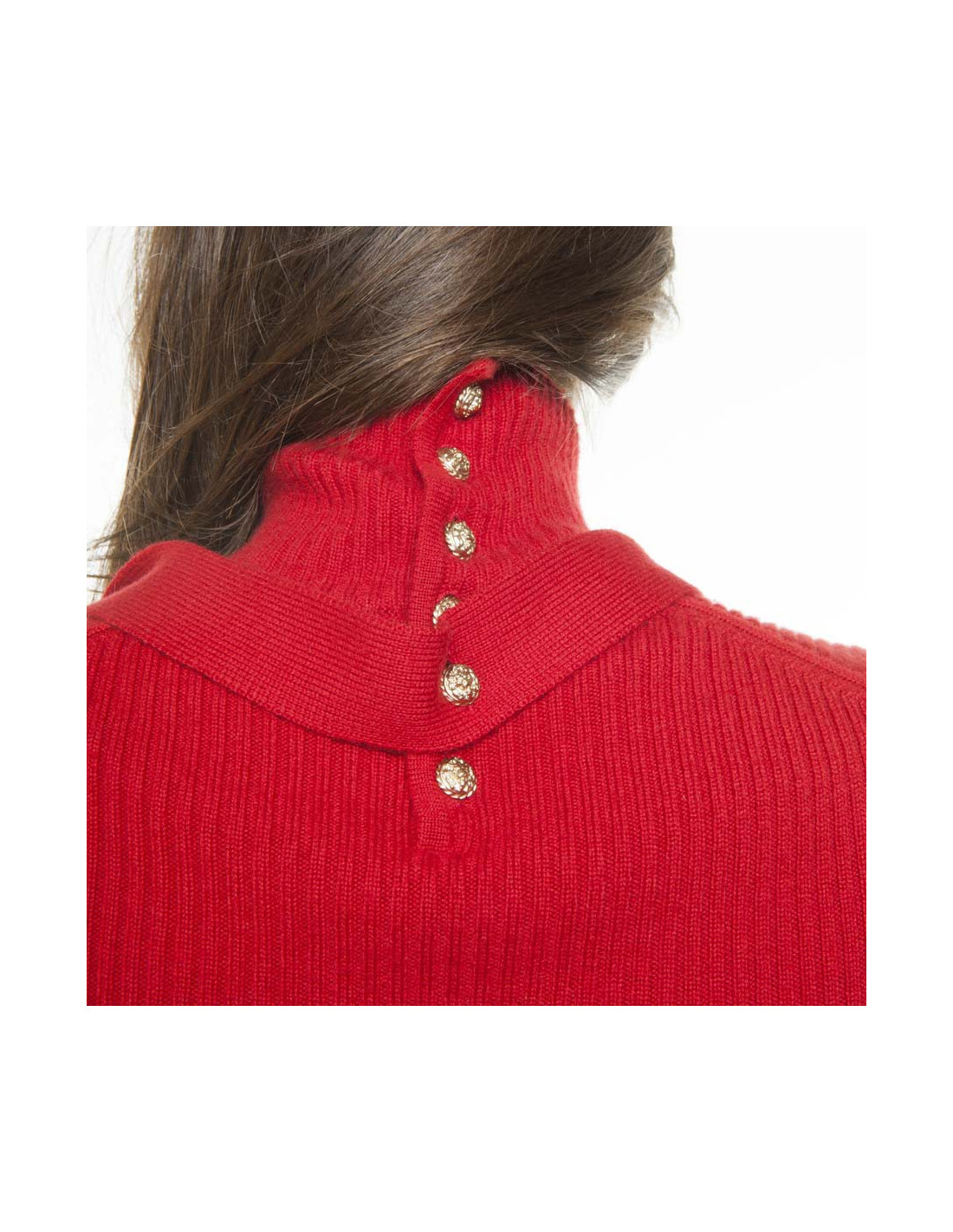Sweater neck fireplace 100%, size 38 Chanel cashmere, red color. The back closes by 6 Golden buttons "lion". There is the possibility of dragging a belt at the waist. Fall 2003 collection. In very good condition.